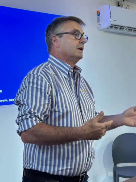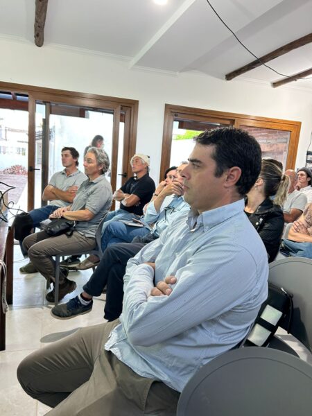 En la tarde del martes, más precisamente a las 19, se realizó en la Sociedad Rural de Navarro una charla informativa sobre la identificación electrónica de bovinos a cargo del vicepresidente del SE. NA.S.A., Néstor Osacar. Tras las palabras de bienvenida del presidente de la institución local, Ignacio Bastanchuri, Néstor brindó una amplia y detallada explicación acerca de los alcances y la implementación del nuevo sistema a los asistentes. Finalizada la alocución llegó el momento de las preguntas y finalmente su agradecimiento, remarcando que estaba orgulloso de haber venido a «su pueblo» para poder brindar detalles del nuevo mecanismo, ya que precisamente el puede ocupar el lugar que ocupa entre otras cosas «porque los productores locales hicieron las cosas bien». A continuación, el video con la nota que le realizáramos post charla y algunas imágenes captadas por nuestra cámara.
