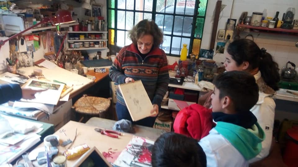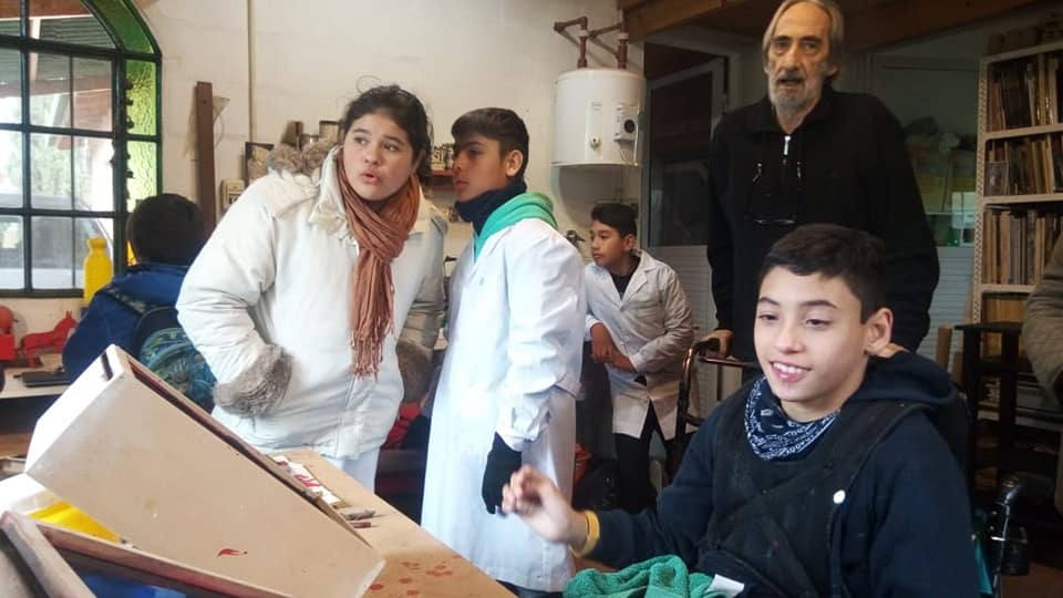 Este viernes 6, los alumnos del pretaller de la escuela especial, a cargo del profe Mauricio, visitaron el atelier de los artistas plásticos Inés Vega y su esposo Hugo Sbernini. Lo hicieron en el marco del proyecto «La diversidad en colores y formas» y disfrutaron de sus bellas obras y de un hermoso momento compartido que fortalece sus aprendizajes y motiva para crear sus propias obras! Además trajeron de regalo libros de los artistas para la biblioteca escolar.