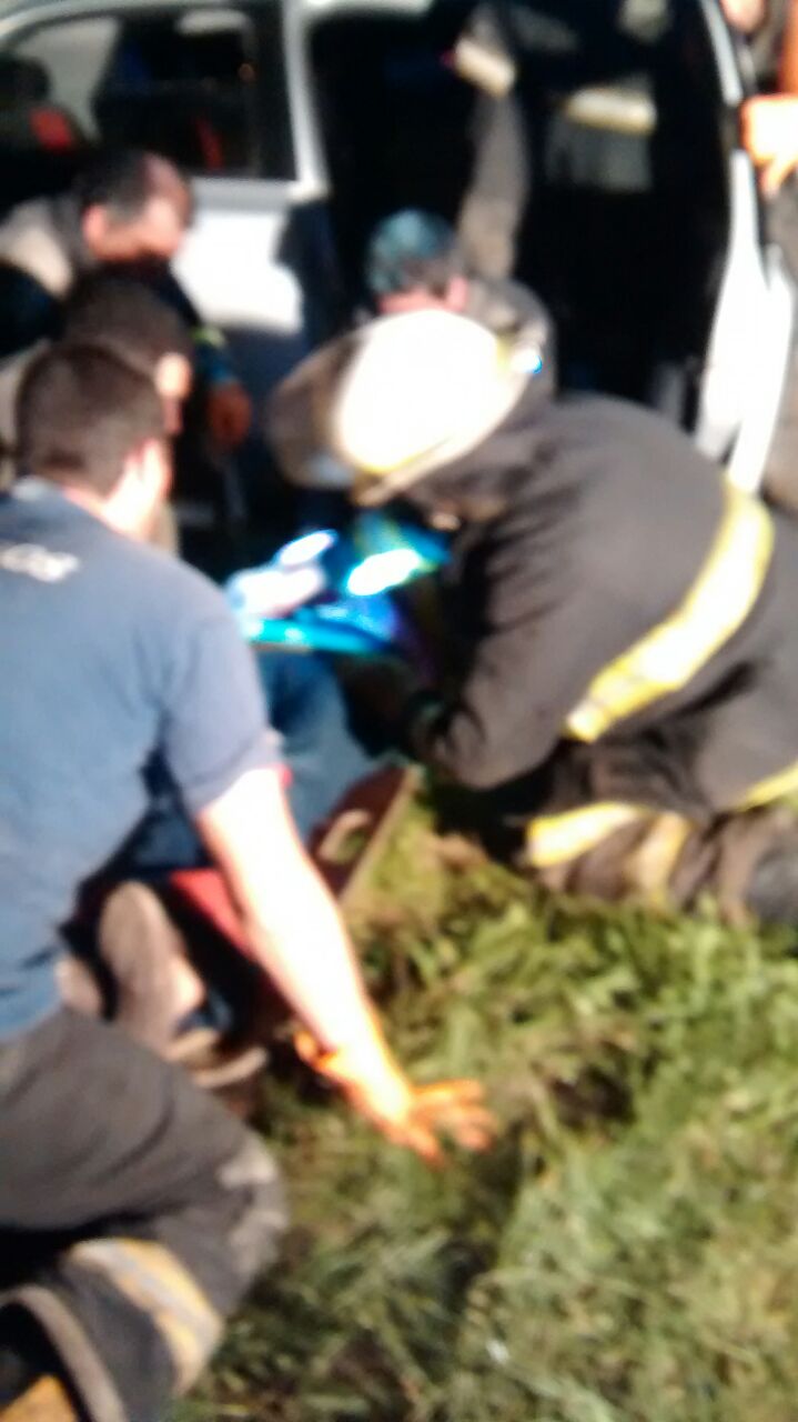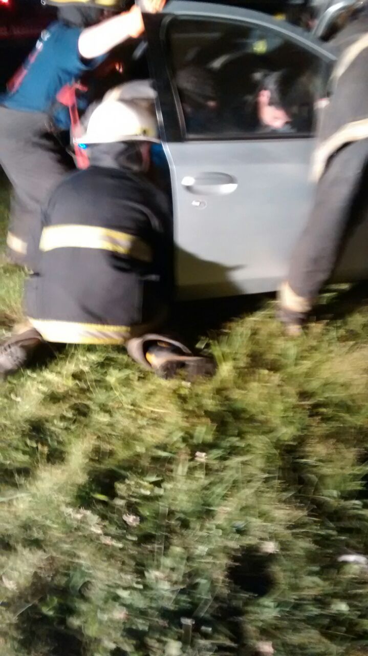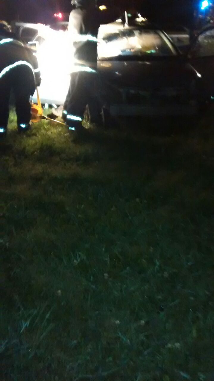 Cuando aún los bomberos estaban asistiendo a la gente que había colisionado cerca de las 23, en calle 15 e/ 38 y 40, un vecino de Navarro con su esposa, se despistaron en la rotonda de la ruta 47. Un amigo mío que pasaba por el lugar fue quien los socorrió en primer término hasta la llegada de los bomberos que trasladaron a ambos al hospital local para una mejor atención. En este caso no sería apresurado mencionar que no se descartan lesiones óseas para el conductor del vehículo por lo observado y por lo fuerte del impacto. Esperemos que no sea así. De poseer más información, se la haremos llegar de inmediato.
