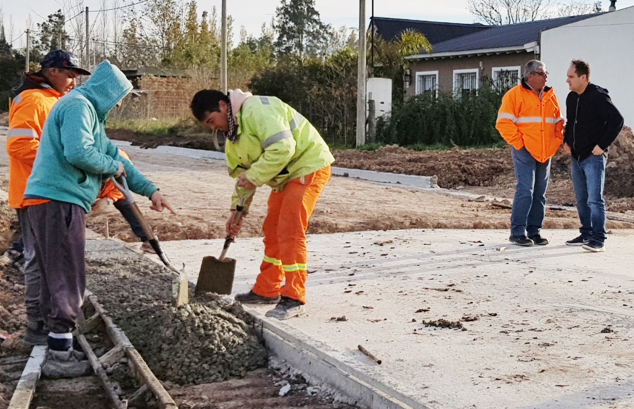 El intendente Santiago Maggiotti estuvo durante la mañana del martes en la obra de asfalto, observando la tarea que se llevaba adelante en la esquina mencionada.