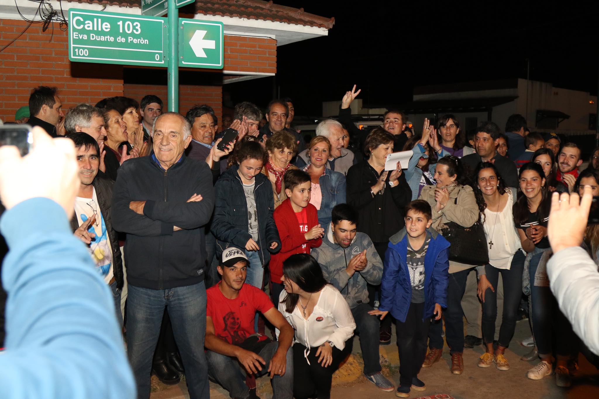 En el día de ayer se realizó en el P. J. local, el acto por el Día de la Lealtad Peronista. Luego en la intersección de calles 103 y 24 se realizó el descubrimiento del cartel que llevará la calle 103 a partir de ahora, con el nombre Eva Duarte de Perón.