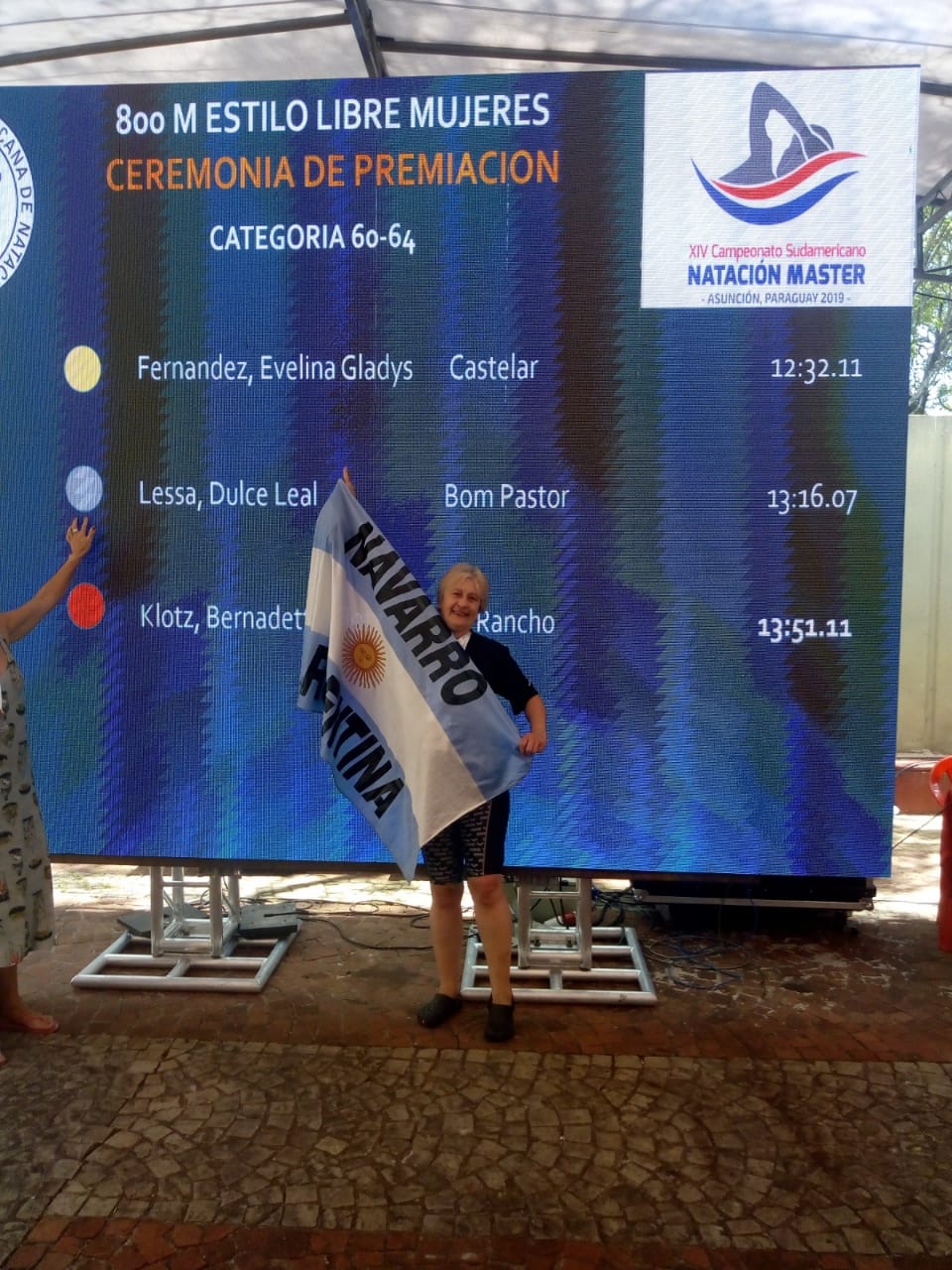 Hoy comenzó su performance con la competencia de 800 metros libres, donde también participaron otras argentinas como Ana María Escutia, Cristina Solís y Susana Barboza y obtuvo nada menos que el oro y el Campeonato Sudamericano.