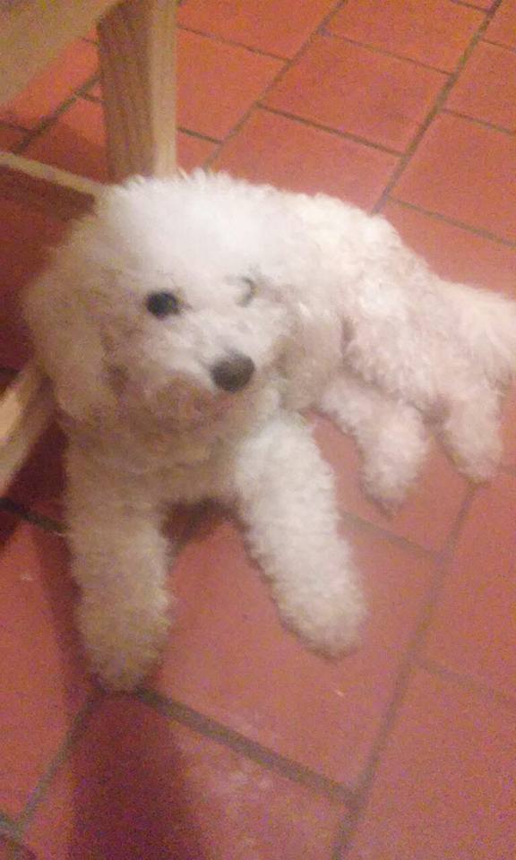 Buenas Tardes. mi nombre es Eugenia Molina y vivo en Gral Las Heras. El 16 de julio nos robaron a Rico, un Bichon Frise de 3 años castrado. Rico es el perrito de asistencia de mi hija de 15 años quien tiene esclerosis múltiple. La enfermedad en estos dos años de diagnostico ha dejado y sigue dejando serias secuelas en su cuerpo. Rico es su compañía en las terapias de recuperación, es quien le ayuda a movilizar sus brazos, le ayuda a ponerse las medias, a girar en la cama. Lo llevaron del patio de la casa donde lo estaban cuidando mientras Lucila estaba internada enfrentando una recaída. Lo hemos buscado junto a mi otra hija de 12 años sin descanso hasta que ayer un llamado nos alertó de quien lo habría llevado y que podría haber sido vendido en Navarro. No hay dia en que no lo busquemos, sobre todo porque su perdida es un retroceso para Lucila; uno más que se suma a todo lo que la enfermedad hace. Agradecería difusión de su imágen, necesitamos encontrarlo, se gratificará su devolución sin preguntas. Sólo deseamos que Rico vuelva a casa. Gracias. Eugenia Molina 1123565278.