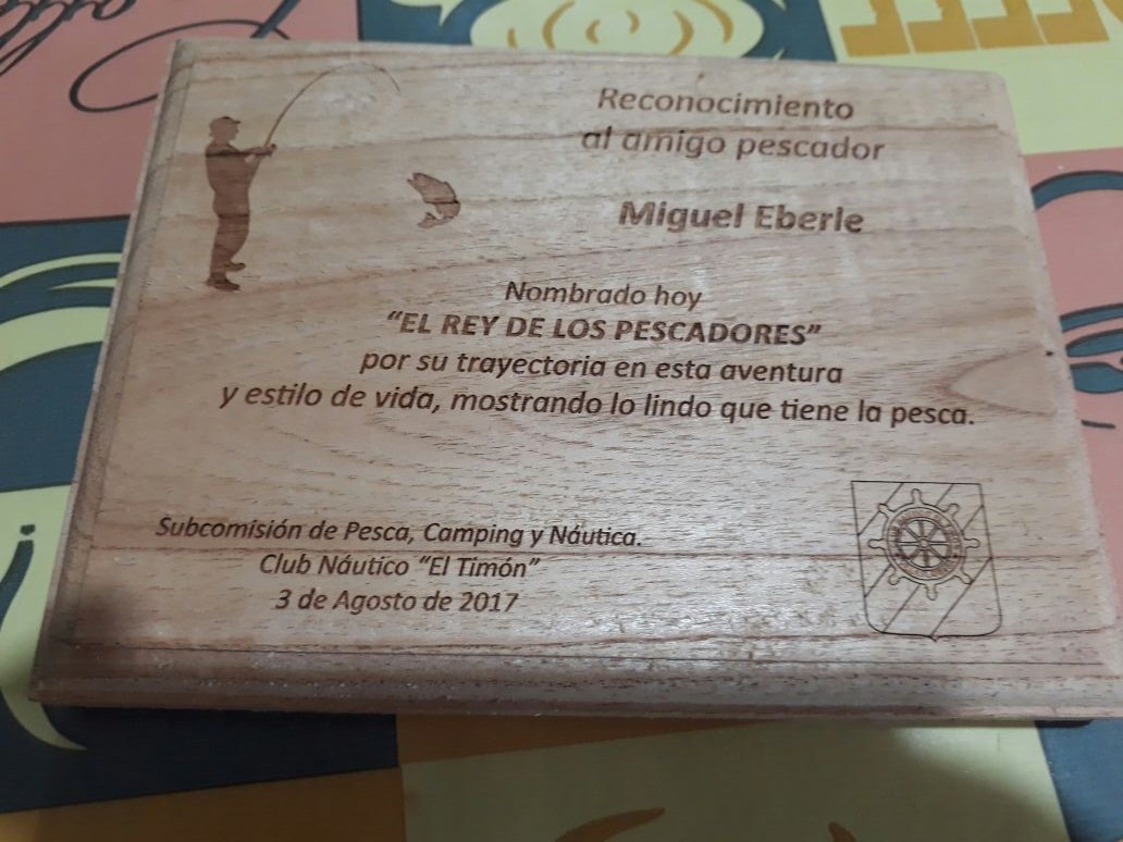Los amantes de la pesca recibimos con gratitud una noticia que nos llegó hace instantes. Miguel Eberle fue reconocido en Jauregui, por el Club Náutico «El Timón», que lo nombró «Rey de los pescadores». Esto fue el domingo 6 de agosto. Miguel recibió una invitación de parte de Nelson Martino, pero en la misma no le habían adelantado de que se trataba el premio que recibiría; sólo le mencionaron que estaba invitado a un almuerzo que organizaba la entidad. Recordemos que Miguel, representando a la Peña El Biguá participa en todos los concursos zonales realizados por el Club de Pesca Lobos, además de los que se realizan en Navarro a partir del mes de septiembre. Nos comenta Miguel que el Club de Pesca Navarro también fue invitado y recibió un presente. Miguel fue destacado entre muchísimos pescadores por el jurado conformado por gente de Mercedes, Chivilcoy, Suipacha, Lobos, Luján y Cañuelas. Una gran alegría para Miguel y para todos los que compartimos con él, la pasión por la pesca. Felicitaciones amigo, muy merecido….