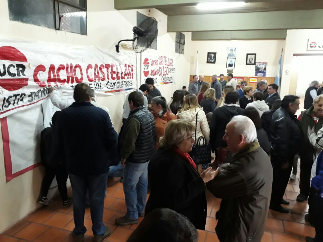 Para las 21 estaba programado el cierre de Cambiemos U.C.R. y para las 21,15 el de Unidad Ciudadana. Era casi imposible poder estar en los dos lugares, ya que los horarios estaban casi superpuestos. Por tal motivo, cumpliendo con dicha programación nos dirigimos en primer término al Comité de la U.C.R. Allí, ya sobre las 21, algunos medios solicitaron una entrevista con Castellari, a fin de poder llegar de ese modo a cubrir los dos actos, ya que faltaba bastante para el comienzo del de la U.C.R. Castellari insistió en la postura de acompañar como corresponde en caso de perder la interna, y si fuera a la inversa, dar el lugar que corresponde a la lista perdedora. También advirtió que espera con optimismo el domingo, ya que en estos días ha notado mucho consenso en la gente hacia la lista que encabeza. Consultado acerca de como tomó la adhesión de la gobernadora Vidal a la lista que encabeza Omar Etcheverry, dijo que no cayó bien, que había un pacto para que eso no ocurriese y que Vidal no debería haber tomado esa posición por el bien de Cambiemos.