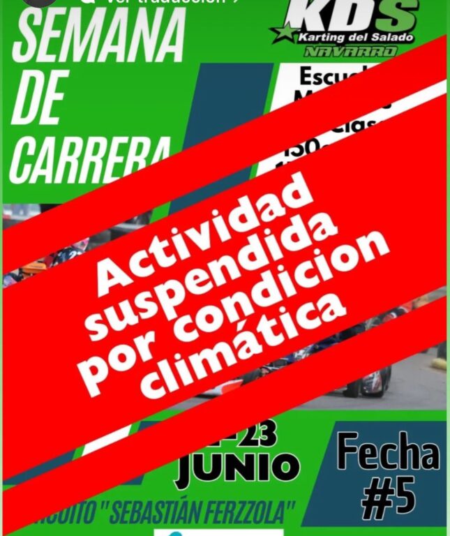 La quinta fecha del torneo del Kárting del Salado fue pospuesta para el próximo fin de semana por cuestiones climáticas. Lamentablemente la lluvia caída y los pronósticos para nada alentadores, hicieron que la actividad se retrase siete días. El fin de semana del 29 y 30 de junio, todos al Sebastián Ferzzola de Navarro.