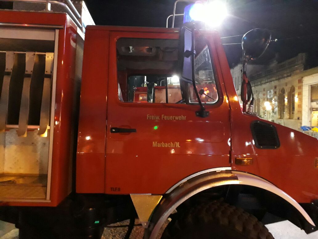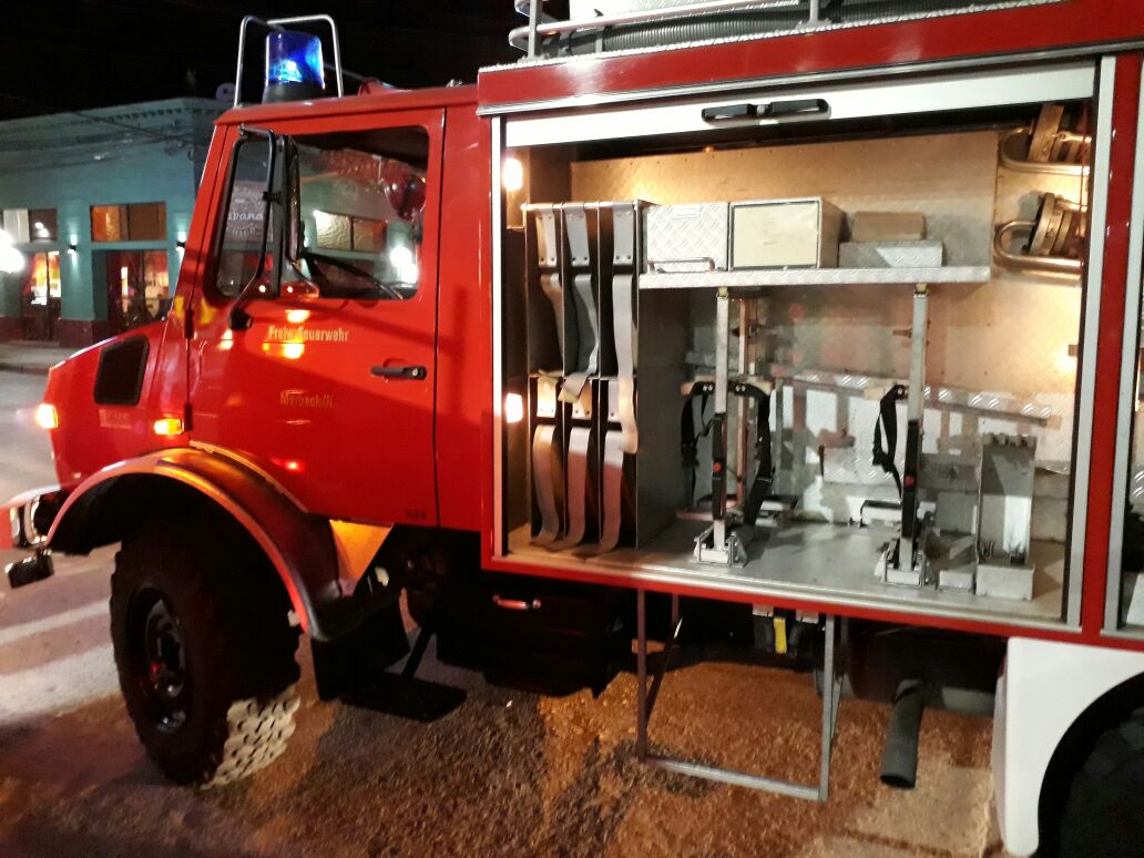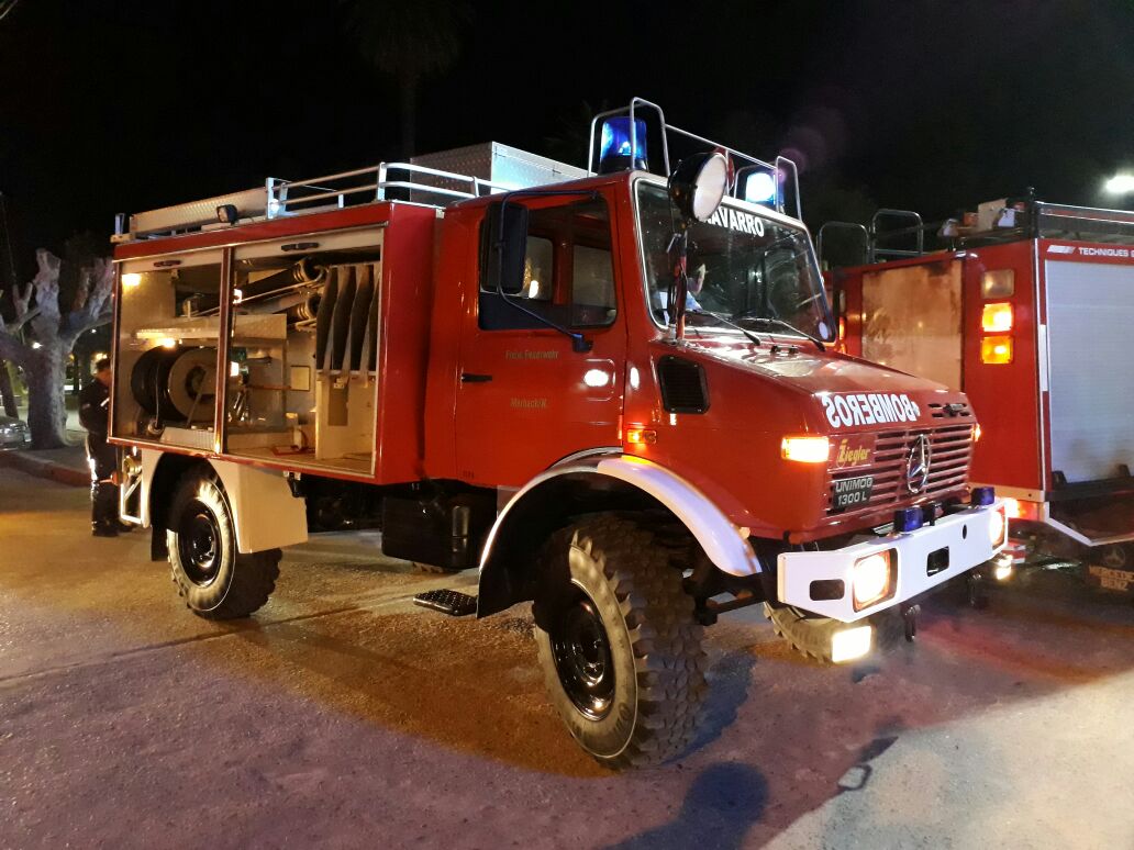 Como ya se había anticipado hace instantes nomás, llegó la unidad Unimog Mercedes Benz 1300L a Navarro. Llegó encabezando una caravana hasta el Monumento al Bombero y allí fue recibido por los propios bomberos, familiares, público en general y algunos medios periodísticos. Recordemos que el Unimog procedente de Alemania, será de mucha utilidad en caso de incendios forestales y cuenta con la ventaja de poder pasar por cualquier tipo de caminos.