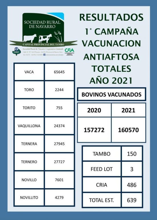 La Sociedad Rural de Navarro ha informado acerca de los resultados de la primer vacunación antiaftosa del 2021.