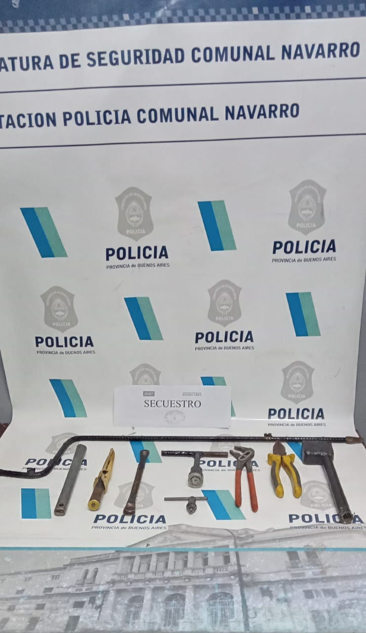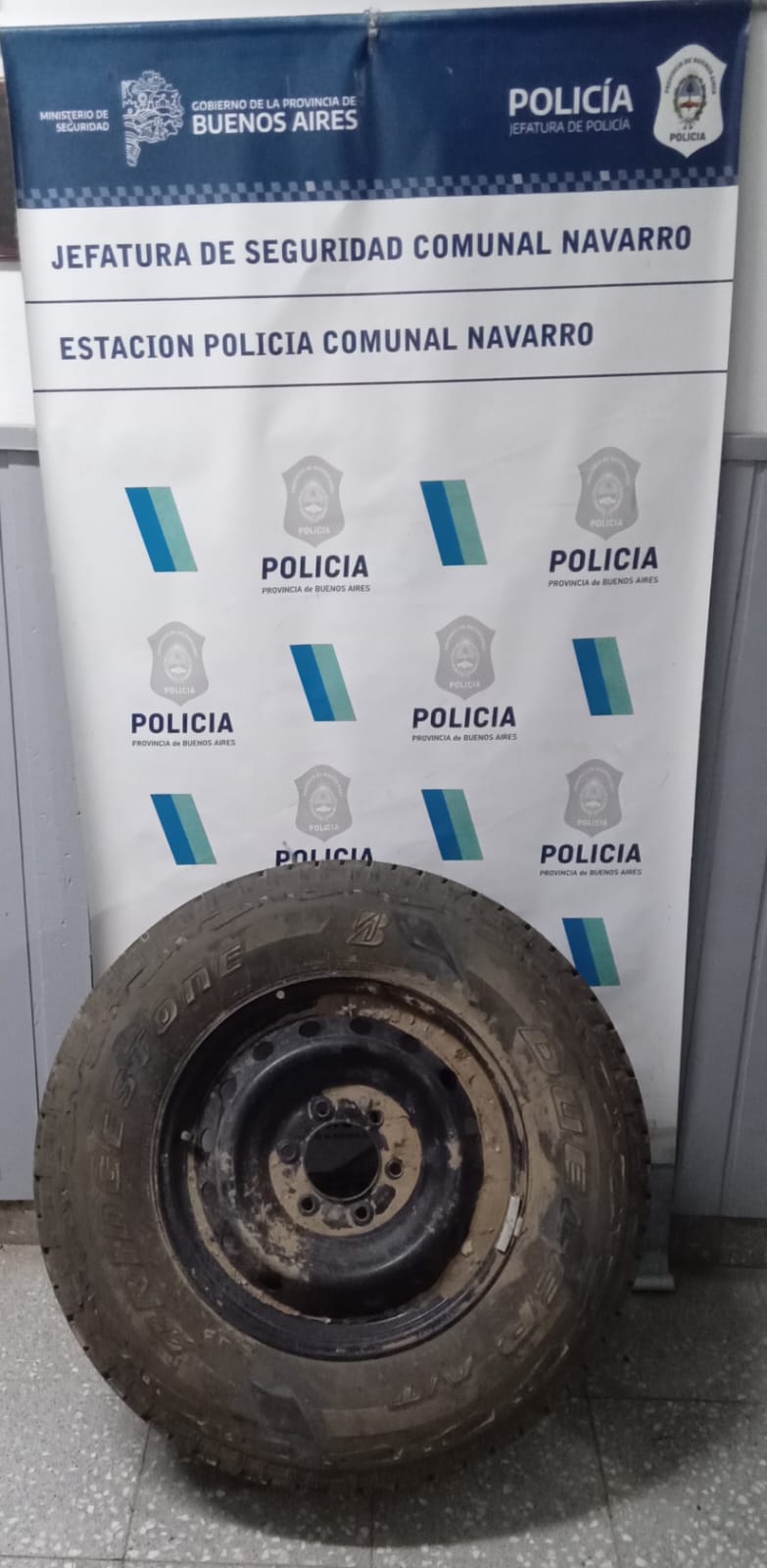 El día domingo en horas de la madrugada, personal de Estación de Policia Comunal Navarro, observa un vehículo marca Chevrolet Cruze, color gris plata, de idénticas características al que había cometido ilícito en el mes de febrero en un domicilio en calle 30 y 11 de este medio, donde autores ignorados a bordo de Crevrolet Cruce color Gris plata, habían sustraído un auxilio de camioneta Ford Ranger, por lo que lo interceptan en calle 23 y 22 de esta localidad, descendiendo del automóvil dos masculinos oriundos de la localidad de Máximo Paz partido de Cañuelas, a quienes se los identifican para luego realizar requisa sobre sus pertenencias y rodado, donde se procede a la incautacion de rueda completa marca BRIGESTONE rodado 17, herramientas varias para sacar ruedas y tuercas de seguridad, vehículo Chevrolet Cruce y a la aprehensión de los dos ocupantes. Intervención UFI 6 Mercedes.