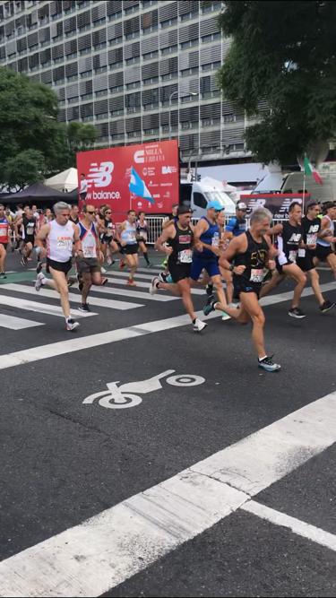 Se trata según nos cuentan, de una prueba de velocidad pura, en la que los nuestros, tuvieron una muy buena participación en el Obelisco. Se largó a tope y se llegó a tope. Mauro largó en categoría 50-59 y Lautaro en 20-29. Mauro registró un tiempo de 05:45 oficial, quedando 16 en su categoría y también en la general, a un ritmo final de 3:34, completando la milla y compitiendo con 101 corredores.