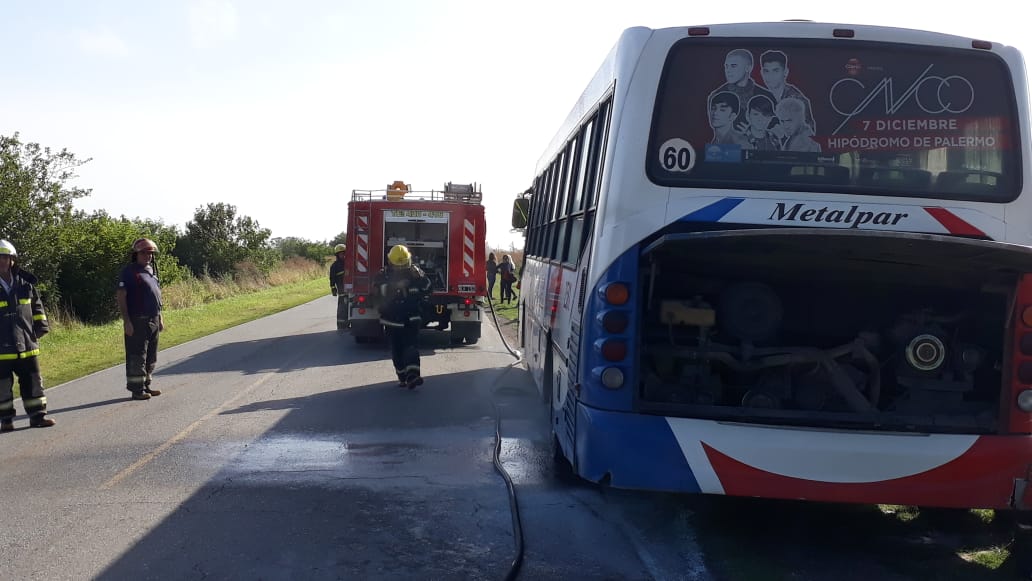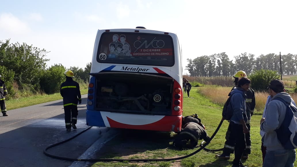 Fue hace minutos nada más, en ruta 40 sentido a Gral. Las Heras, pasando por unos metros la parada que está frente al frigorífico local. Cuando llegamos vimos trabajando a los bomberos de Navarro en una unidad de Ecotrans. Pudimos hablar con el chofer quien nos indicó que al parecer, puede haber originado el fuego una zapata de freno aunque no pudo confirmarlo. La gente bajó de inmediato y fue sólo un susto.