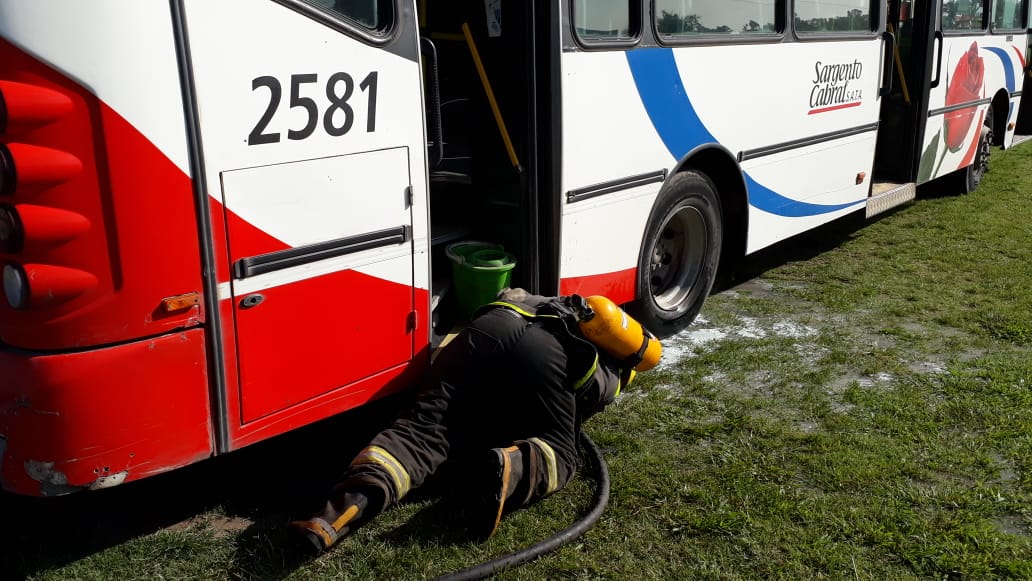 Al darle contacto, minutos más tarde, el micro arrancó pero el fuego volvió, por lo que los bomberos tuvieron que continuar arrojando agua. Ya está controlado.