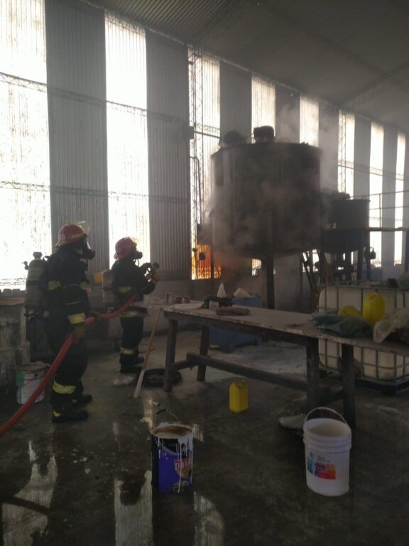 Salida de Bomberos de Navarro de las 11,55. Incendio de una máquina en la fábrica Colores Especiales