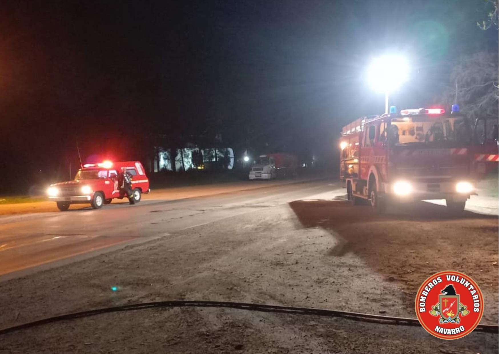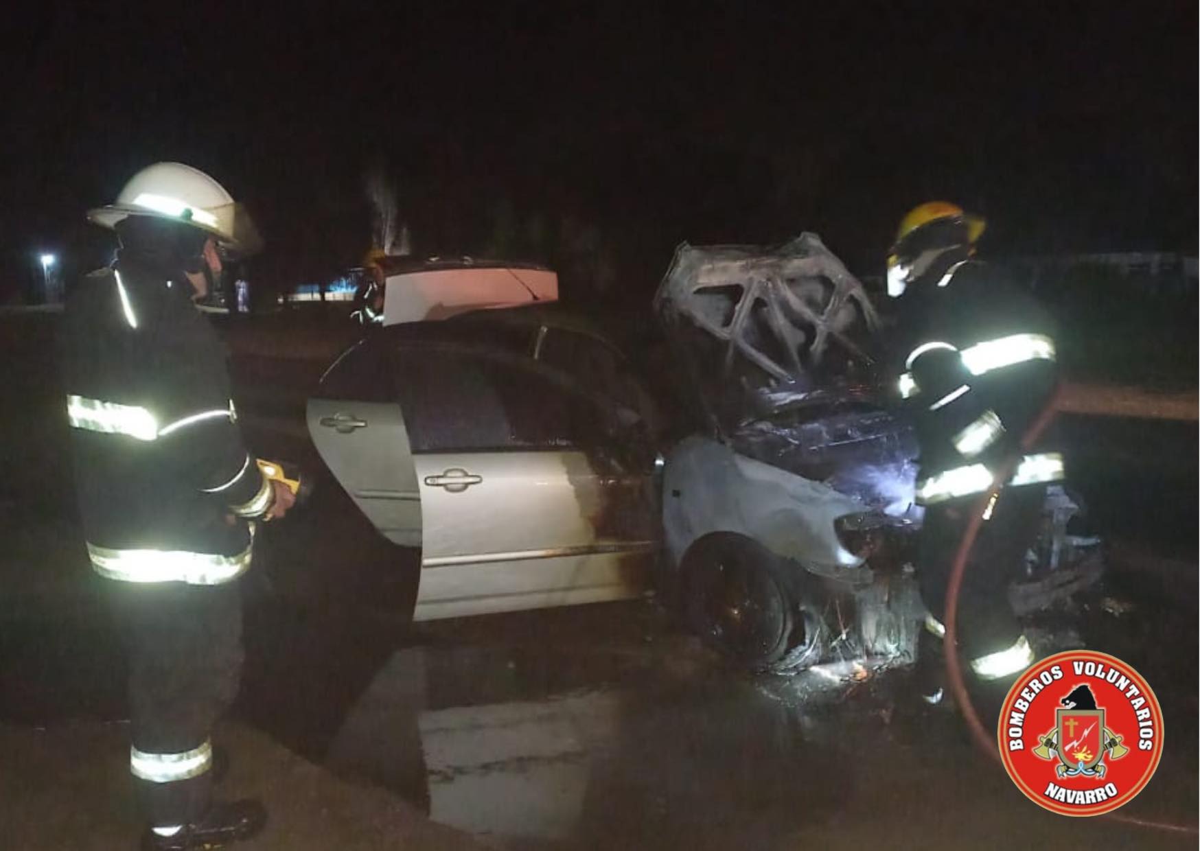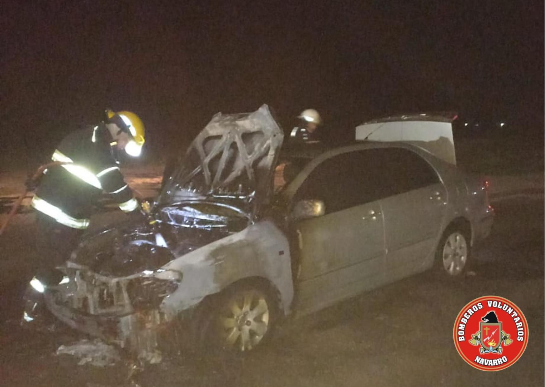 Salida de Bomberos de Navarro en la madrugada. Incendio de vehículo en ruta 41