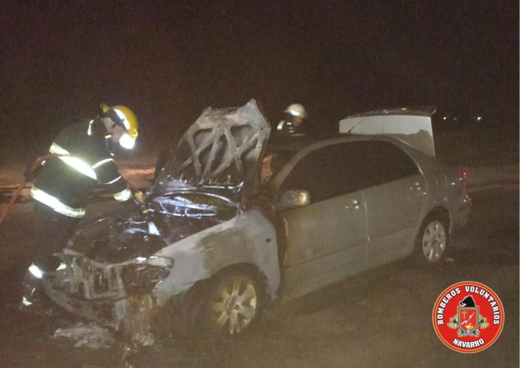 La salida de los Bomberos Voluntarios de Navarro de las 3,02 de este lunes, se debió al incendio de un automóvil en ruta 41, km. 192,3. El vehículo (Toyota Corolla) se dirigía en dirección Mercedes – Lobos y sus ocupantes (3), domiciliados en Lobos, salieron ilesos. Así nos lo han informado desde el propio cuartel.