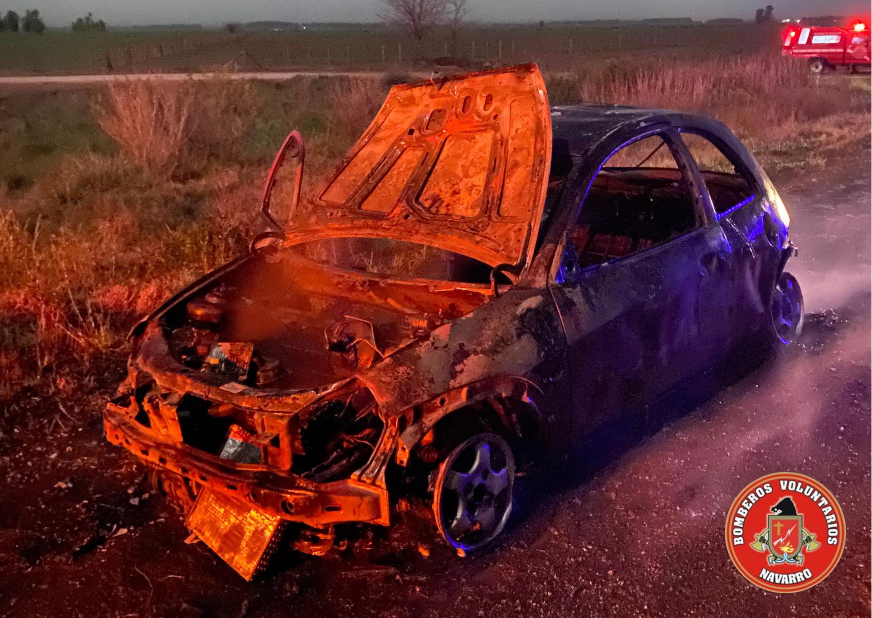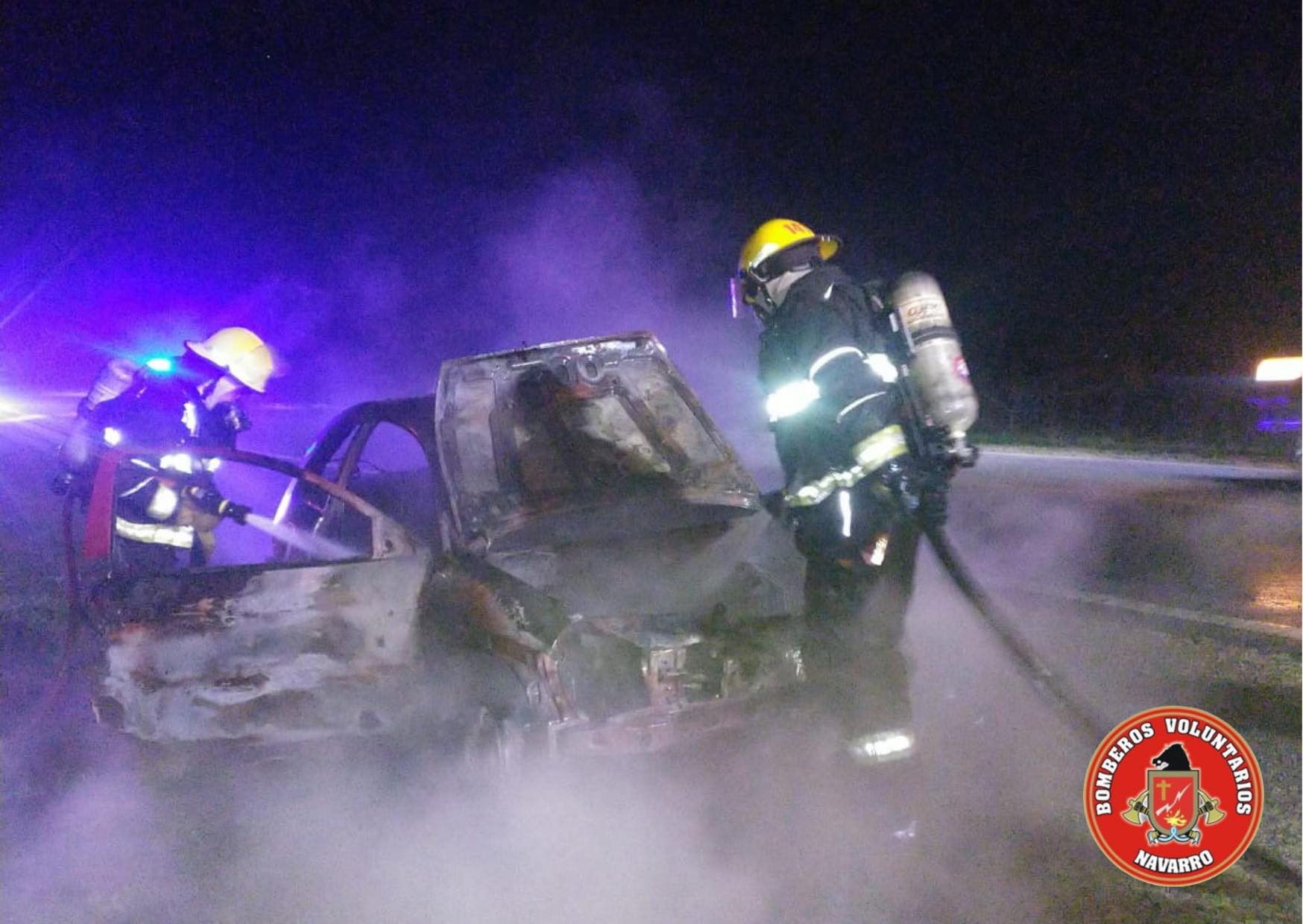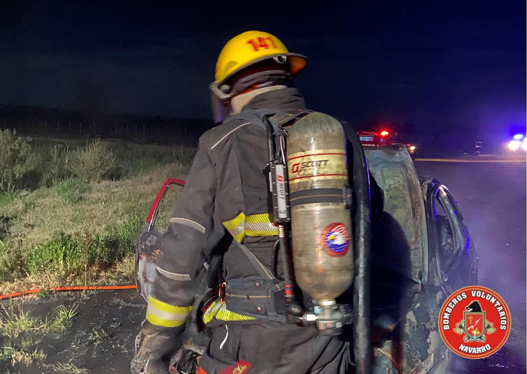 Salida de Bomberos de Navarro en la noche del jueves. Incendio de vehículo en ruta 47