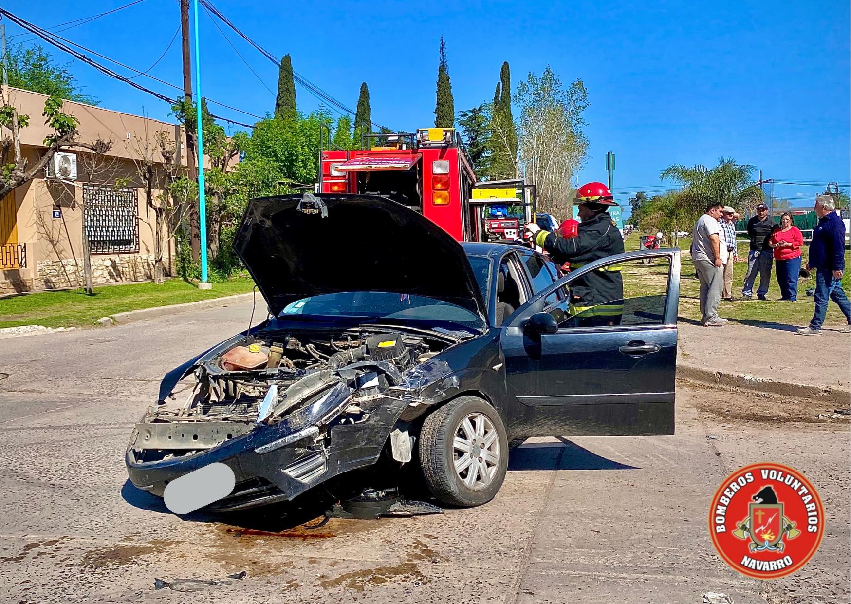 Siendo las 15,03, tres unidades de los Bomberos Voluntarios de Navarro acudieron al llamado telefónico que informaba acerca de la colisión de dos automóviles en la intersección de 24 y 121. Los vehículos involucrados fueron un Fiat Palio y un Ford Fiesta. Seis personas fueron derivadas al hospital local con heridas leves.