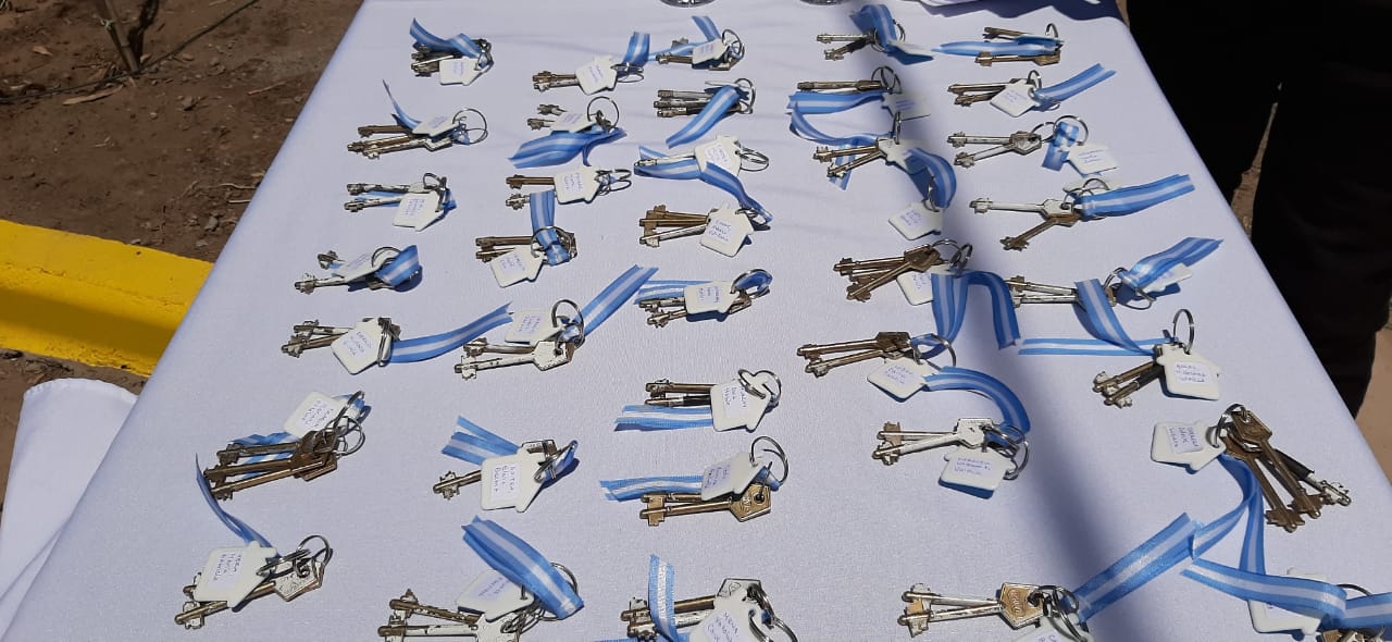 Este mediodía en calle 7 y 44 bis se llevó a cabo el acto de entrega de llaves de las 39 viviendas del Barrio Matadero pertenecientes al plan llamado en su oportunidad, Techo Digno.