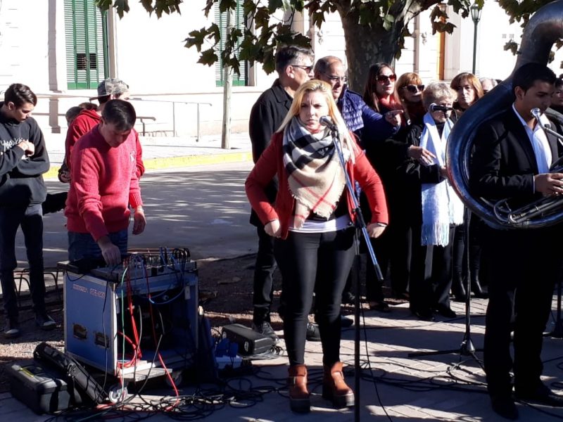 Himno Nacional Argentino con música de la Banda Municipal y con la colaboración de Alihuén Gómez Dimitri entonandolo.
