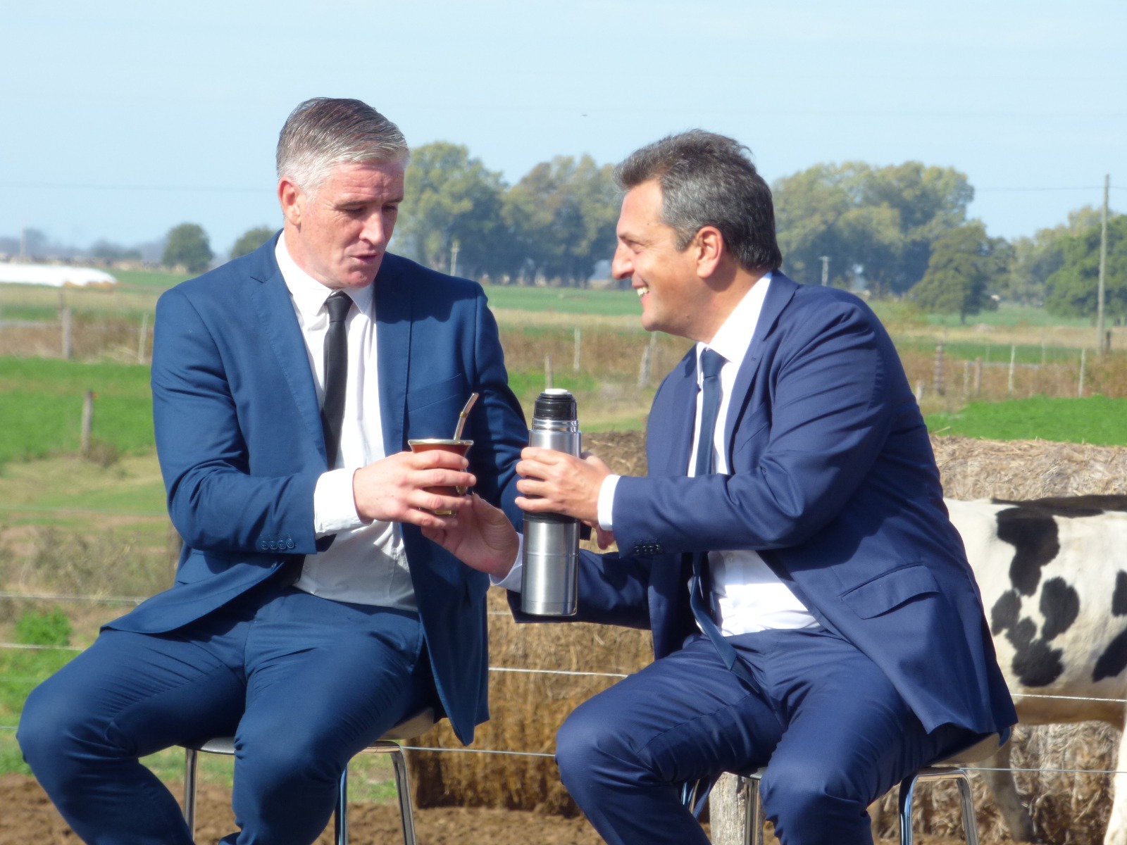 Este jueves durante un acto realizado en nuestra ciudad, Massa anunció la puesta en marcha de un Plan para la cadena avícola, y por otro lado la quinta cuota del Programa Impulso Tambero, que el Gobierno implementó a comienzo del presente año. Ambas medidas representarían una inversión de 10.256 millones de pesos, con el objetivo de asistir a ambos sectores que enfrentan la gripe aviar y las consecuencias de la sequía. Massa se hizo presente en un campo propiedad de Marcelo Gutiérrez donde funciona la fábrica de lácteos «La China», sito en la intersección de rutas 40 y 47 frente al Parque Industrial. Estuvo acompañado del Intendente Facundo Diz, del Intendente de Gral. Las Heras, Javier Osuna, del Secretario de Ganadería Agricultura y Pesca de la Nación, y del Ministro de Desarrollo Agrario de la provincia de Buenos Aires, entre otros.