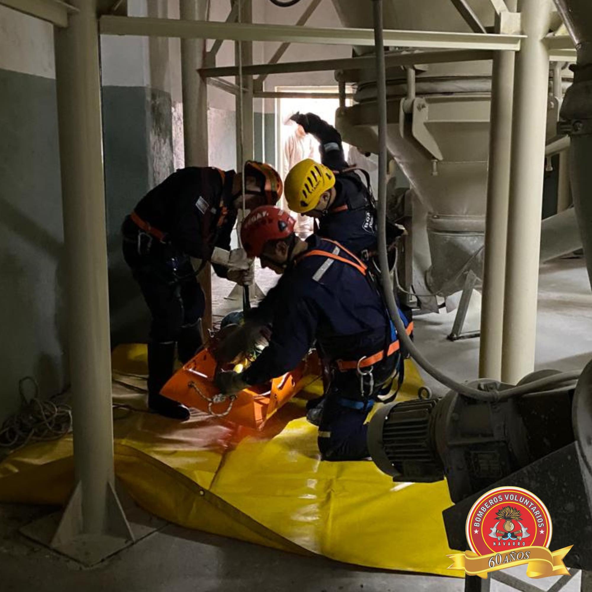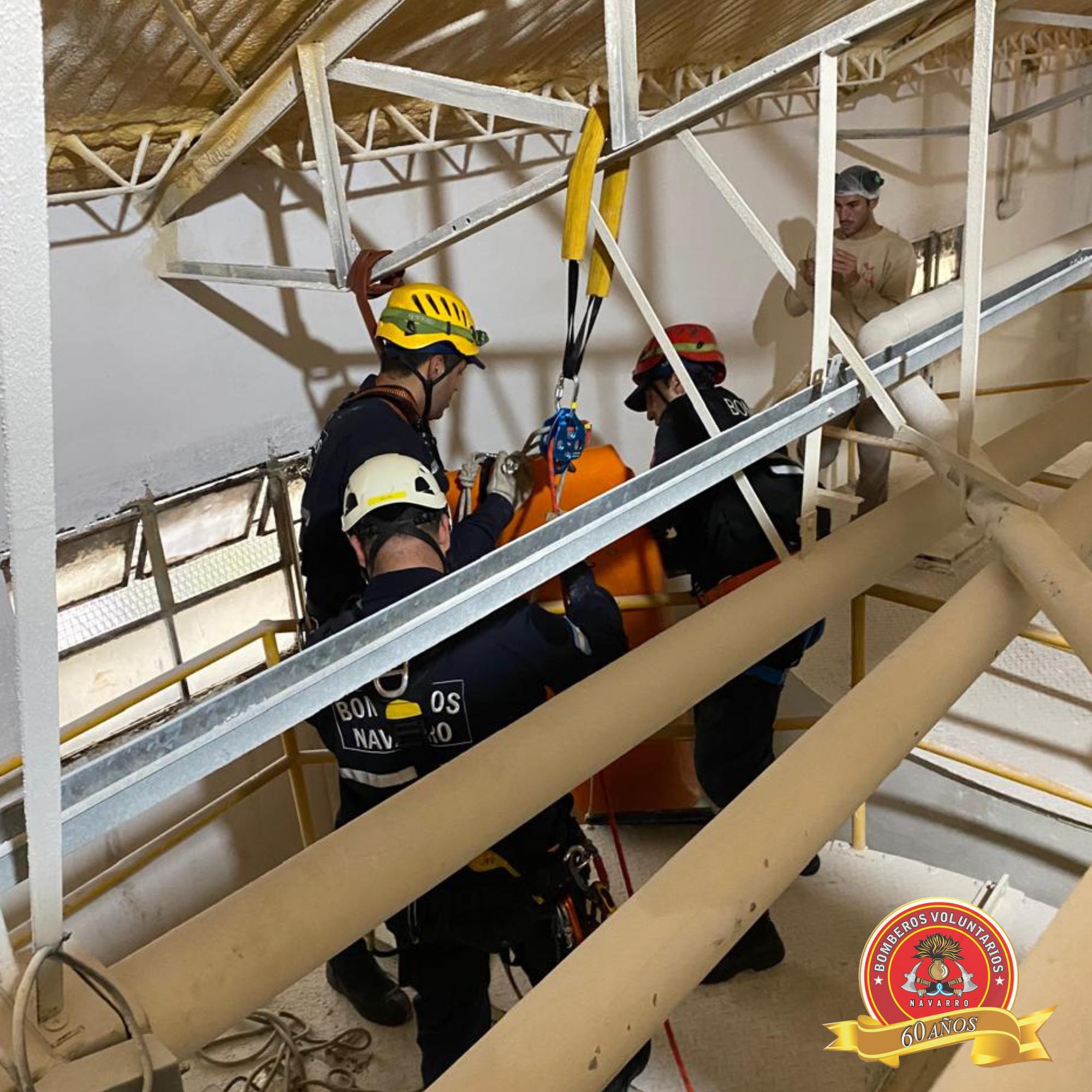 Durante la mañana de hoy se realizó en el Molino Lagomarsino un simulacro de rescate de víctima en plano elevado, a través del Grupo de Rescate Técnico con Cuerdas de los Bomberos Voluntarios de Navarro. A su vez se realizó una capacitación para el uso de extintores a todo el personal del establecimiento. Desde Bomberos señalaron lo siguiente: «Cabe destacar el compromiso de la empresa y el Sindicato de la Industria Molinera para con la seguridad y prevención de siniestros, ya que año a año estamos trabajando en conjunto; agradecemos a las autoridades de la misma y al Sindicato por la convocatoria».