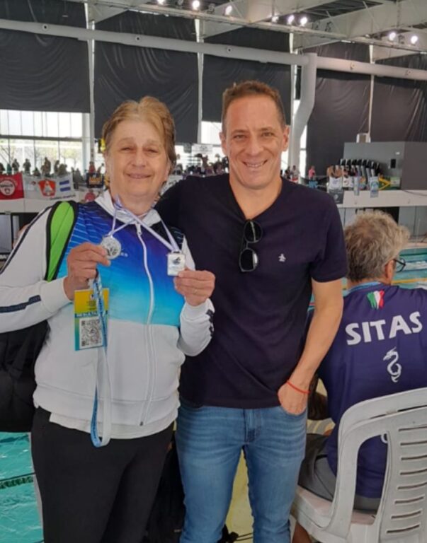 Este viernes es el anteúltimo día de participación para Gladys Fernández en el Sudamericano Máster de Natación. Por la mañana, tal como anticipáramos en el día de ayer participó de dos nuevas pruebas; 200 mts. espalda y 400 mts. libres. En la primera competencia finalizó en tercer lugar, registrando un tiempo de 3,18,93. La ganadora fue la paraguaya Cathy Ganze 3,13,56 y detrás arribó Silvia Borgini.