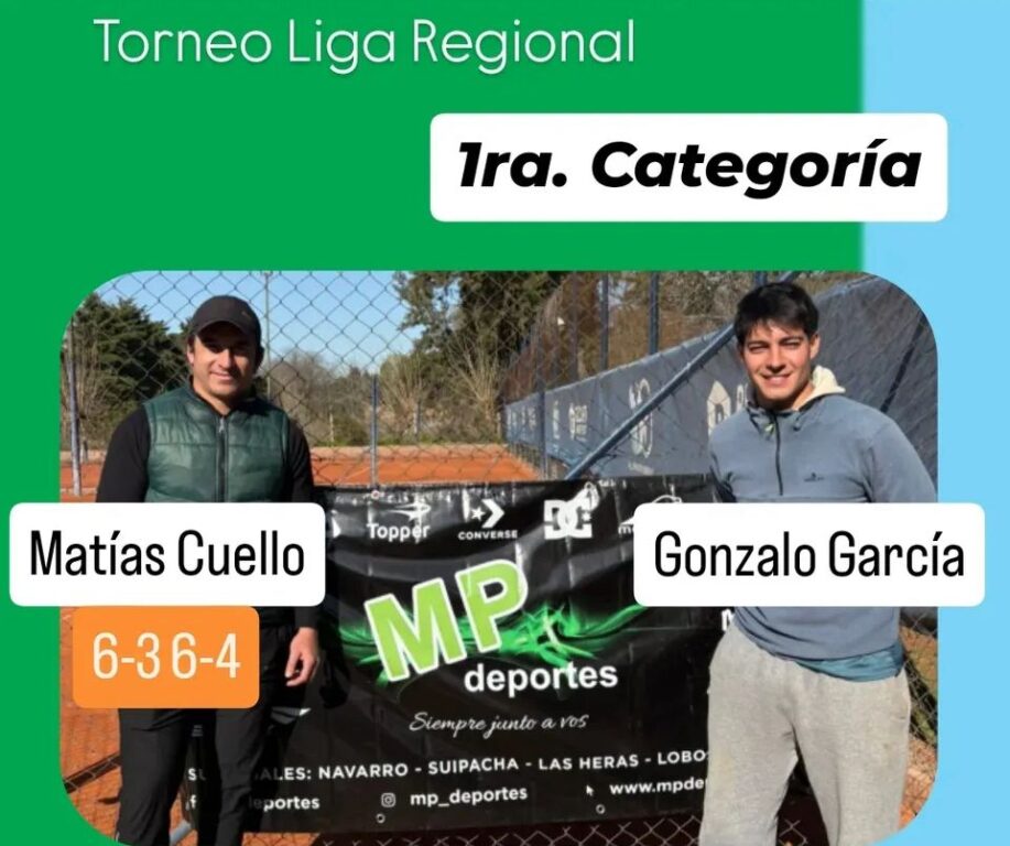 Se está disputando la Liga Regional de Tenis en diferentes categorías y la primera, lo está haciendo en General Las Heras, más específicamente en las canchas de polvo de Los Teros Tenis Club. Allí, ya se conocieron los nombres de los dos finalistas del torneo de la máxima categoría. Uno de ellos es un viejo conocido, Rodrigo Galatti de la ciudad de Marcos Paz. Frente a él estará Matías Cuello, quien acaba de dejar en el camino a Gonzalo García en sets corridos por 6-3 y 6-4. Estaremos informando.