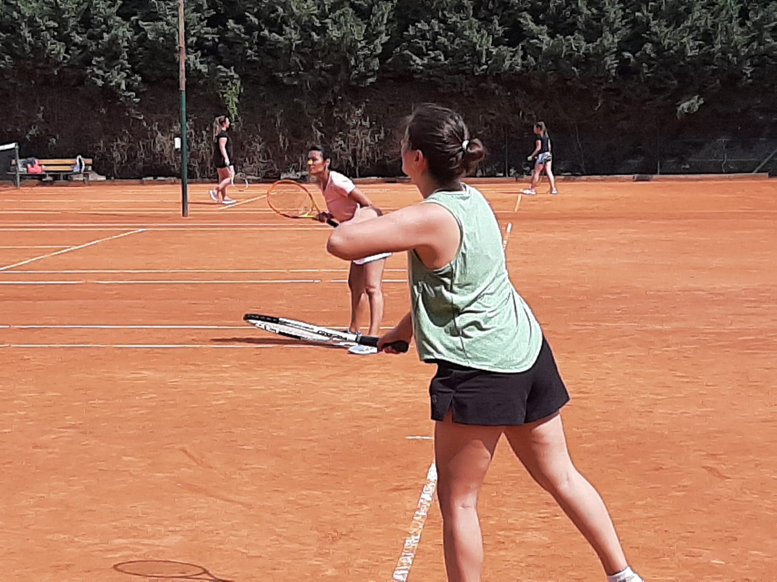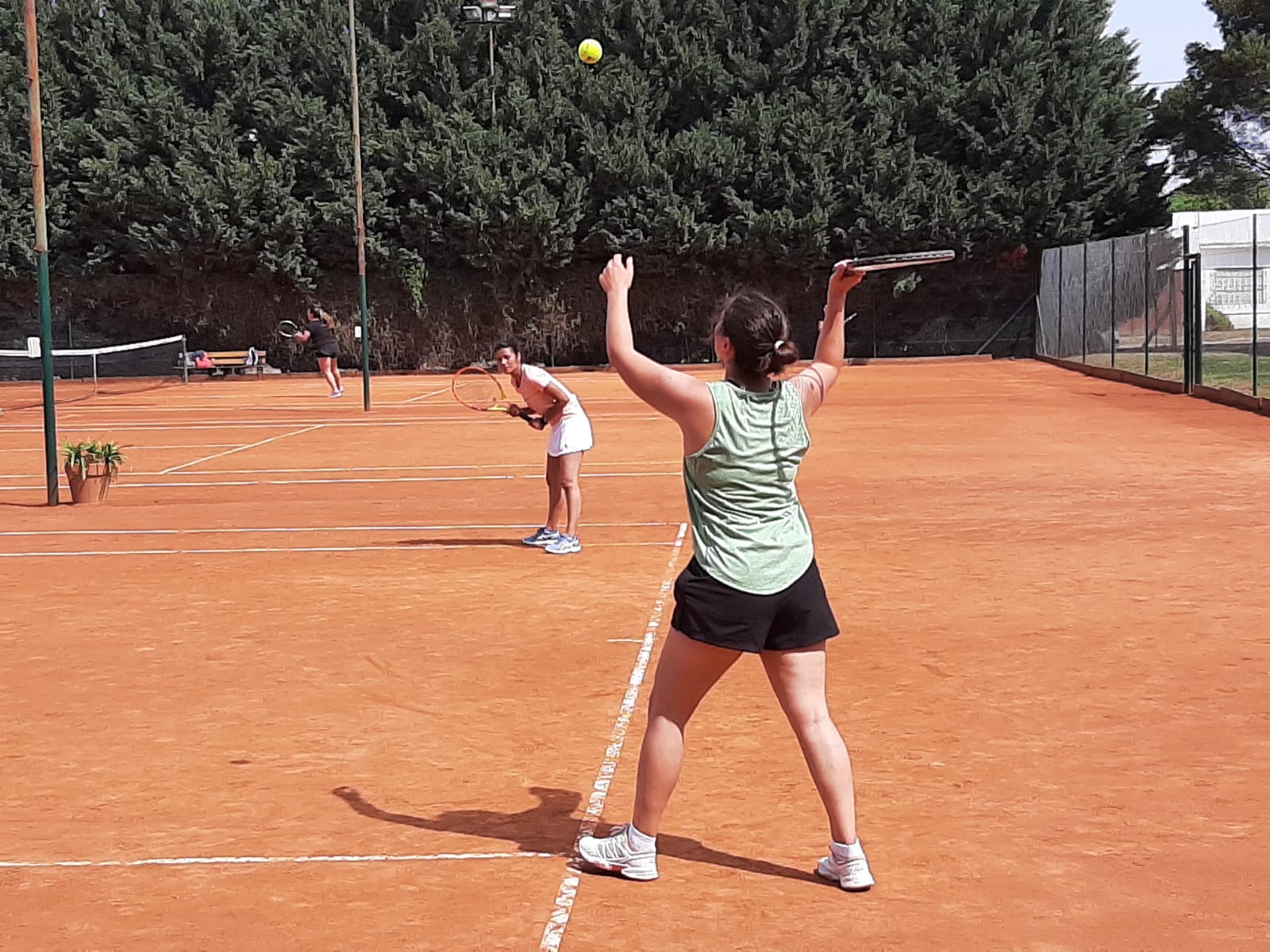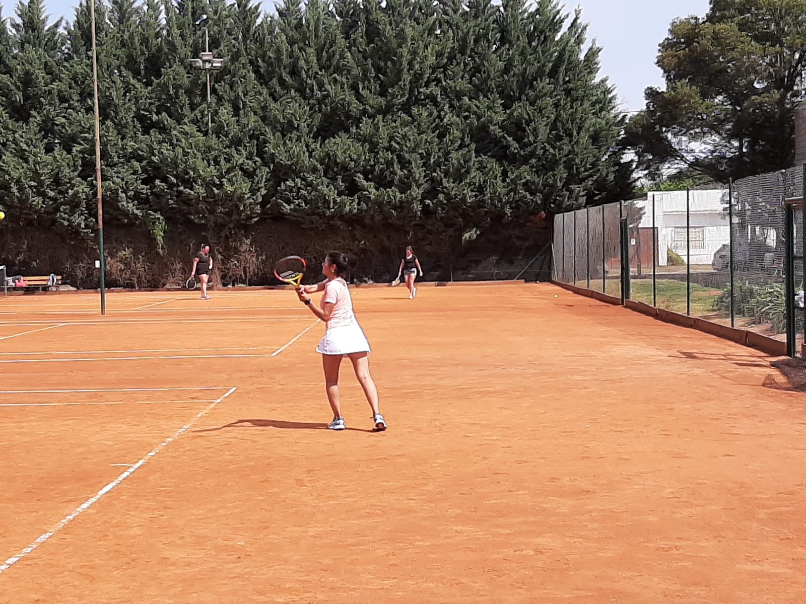 Se disputó este domingo, un torneo relámpago de dobles damas en las canchas de polvo de Navarro Tenis Club. Todo comenzó por la mañana, con partidos simultáneos en las tres canchas, extendiéndose la jornada hasta la tarde.