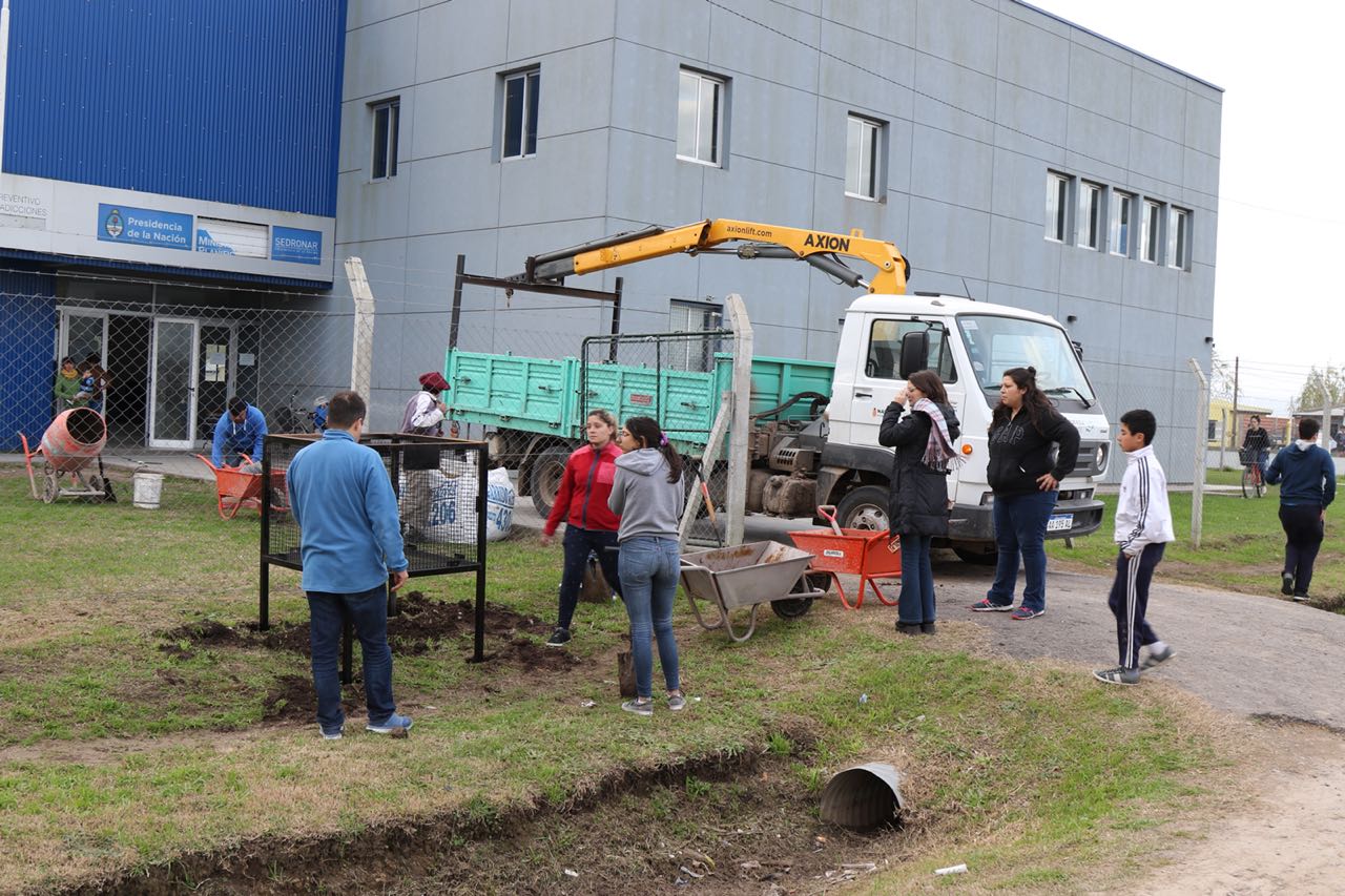 Con la ayuda de los jóvenes que forman parte del equipo de trabajo, se dió respuesta a la solicitud vecinal de colocación de cestos y bicicleteros, realizados por alumnos de la la Secundaria N°4 y el CEPLA.