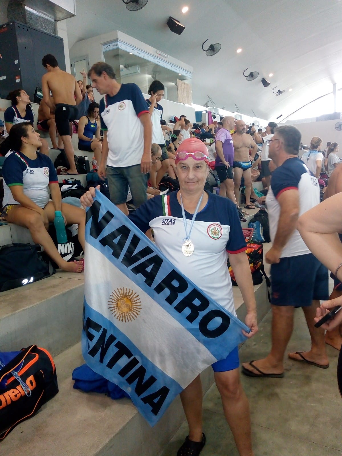 Faltaba un día de competencia tal como anunciamos y faltaba también, un nuevo título argentino para Gladys Fernández. Hoy largó en los 200 metros espalda en pileta larga y logró en Santiago del Estero, otra medalla dorada. Gladys (63), representando al Club SITAS, marcó 3,31,80 contra los 4,11,27 que registró su inmediata perseguidora, Victoria Carrillo de 60 años, representante del Poseidón Swim & Gym. De este modo, la nadadora navarrera cerró un fin de semana espectacular, tal como nos tiene acostumbrados cada vez que participa en este tipo de competencias. Felicitaciones!!!