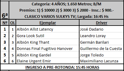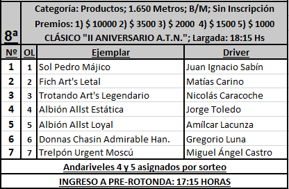 Programa provisorio de carreras para el sábado 18 de septiembre de 2021, se corren desde las 13, 8 competencias.