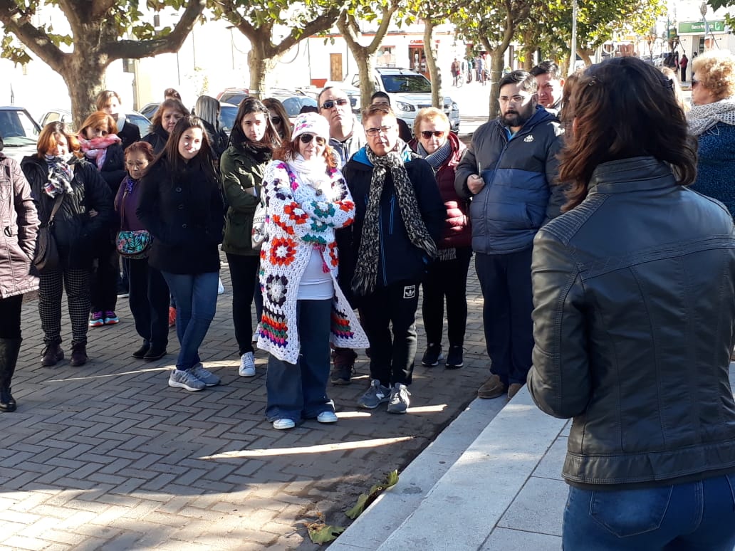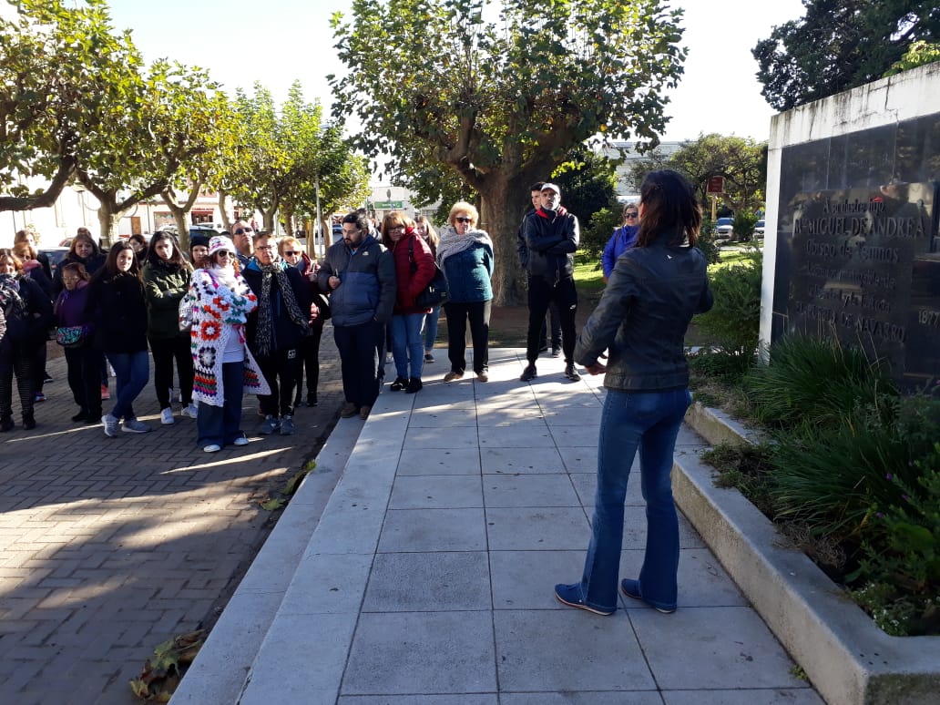 Ni el intenso frío paró a Roxana. El sábado por la mañana pudimos ver cómo, frente a la Parroquia San Lorenzo, se les explicaban distintos temas a un contingente de turistas y estudiantes de turismo que llegaron a nuestra localidad. En el momento que estuvimos allí, pudimos ver a los visitantes muy compenetrados con un relato de Moreira que les ofrecía Roxana Lacelli. Charlando con uno de ellos, me comentó que no es la primera vez que vienen y que están muy interesados en la historia que envuelve a nuestro pueblo y en temas como los de Moreira y Dorrego principalmente.
