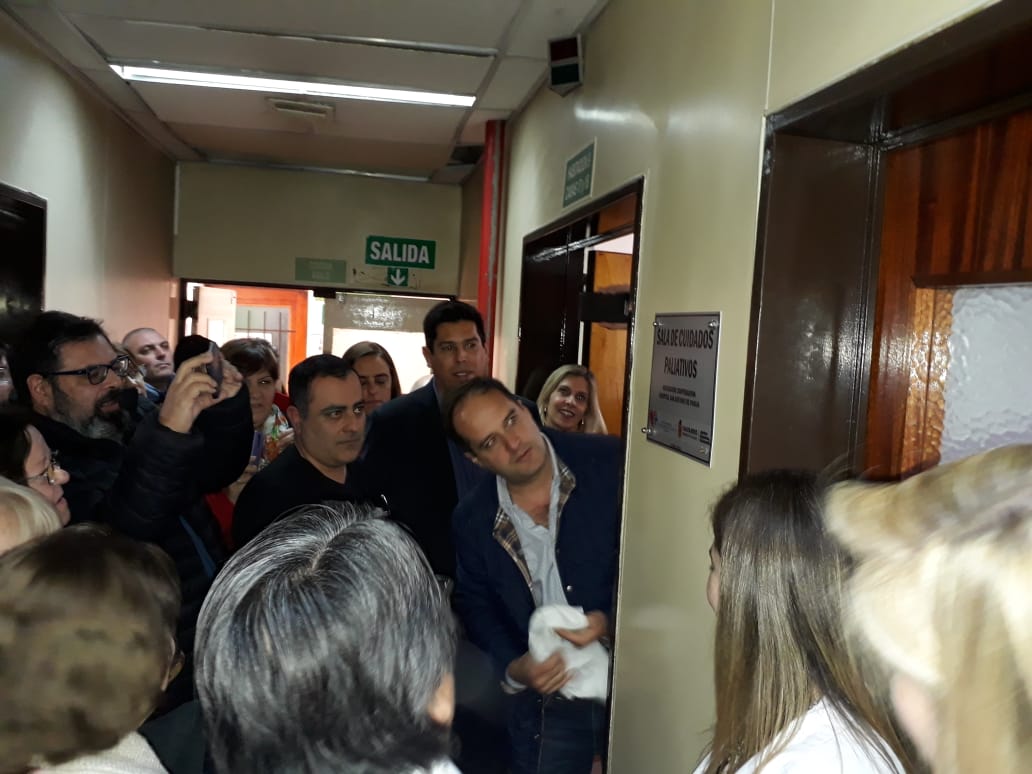 Esta mañana en el hospital local con la presencia del Intendente Municipal, miembros de la Cooperadora, autoridades del área de salud, concejales, miembros del Centro de Martilleros de Navarro, integrantes de la Comisión de Bomberos, personal del nosocomio y vecinos, se llevó a cabo la inauguración de la Sala de Cuidados Paliativos. Además y previamente, se hizo entrega de equipamiento a los responsables de las distintas áreas.