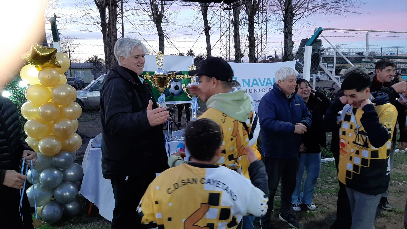 Otra copa más y van?…. San Cayetano en los últimos años, ha sido uno de los grandes animadores, de cuanto torneo haya habido por ahí dando vueltas. En el Polideportivo Municipal y por los torneos de la Liga de Navarro, siempre ha sido candidato y en varias oportunidades, se ha quedado con el título. Hoy no podía ser la excepción. En la previa se sabía que difícilmente podía escapársele éste, y otra vez, pudo dar la vuelta. Cerca de las 18,30 se realizó la entrega de premios con las respectivas menciones para Roberto Eberle, cuyo nombre engalanó el torneo, para el goleador Matías Vázquez, para los directivos de la Liga, para los colaboradores, hubo premios a la trayectoria y finalmente, las copas para primero y segundo entregadas por la comisión y por el Secretario de Deportes, Jorge Diz. Sub campeón resultó el Club Atlético, también de gran torneo.