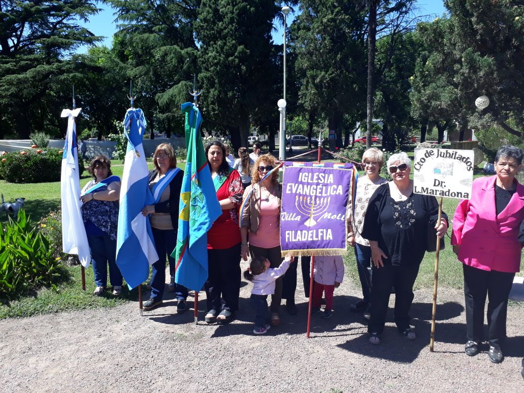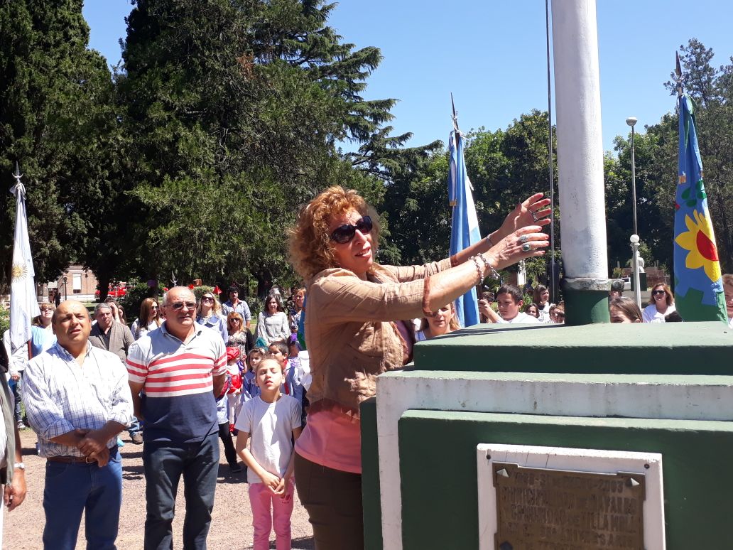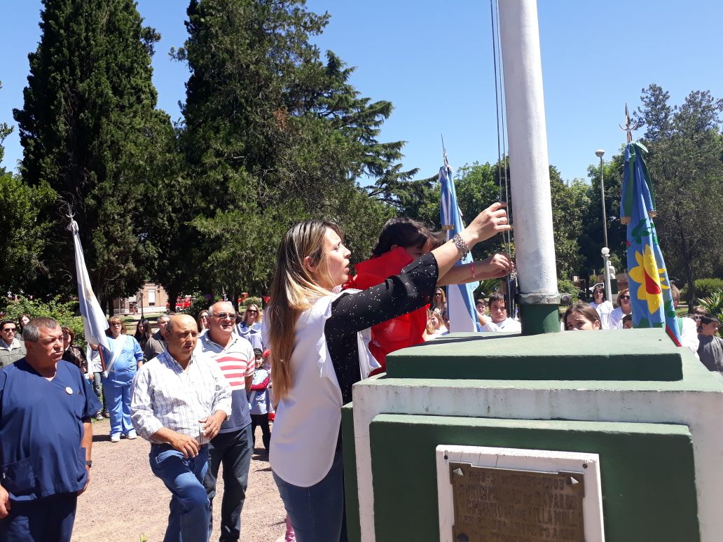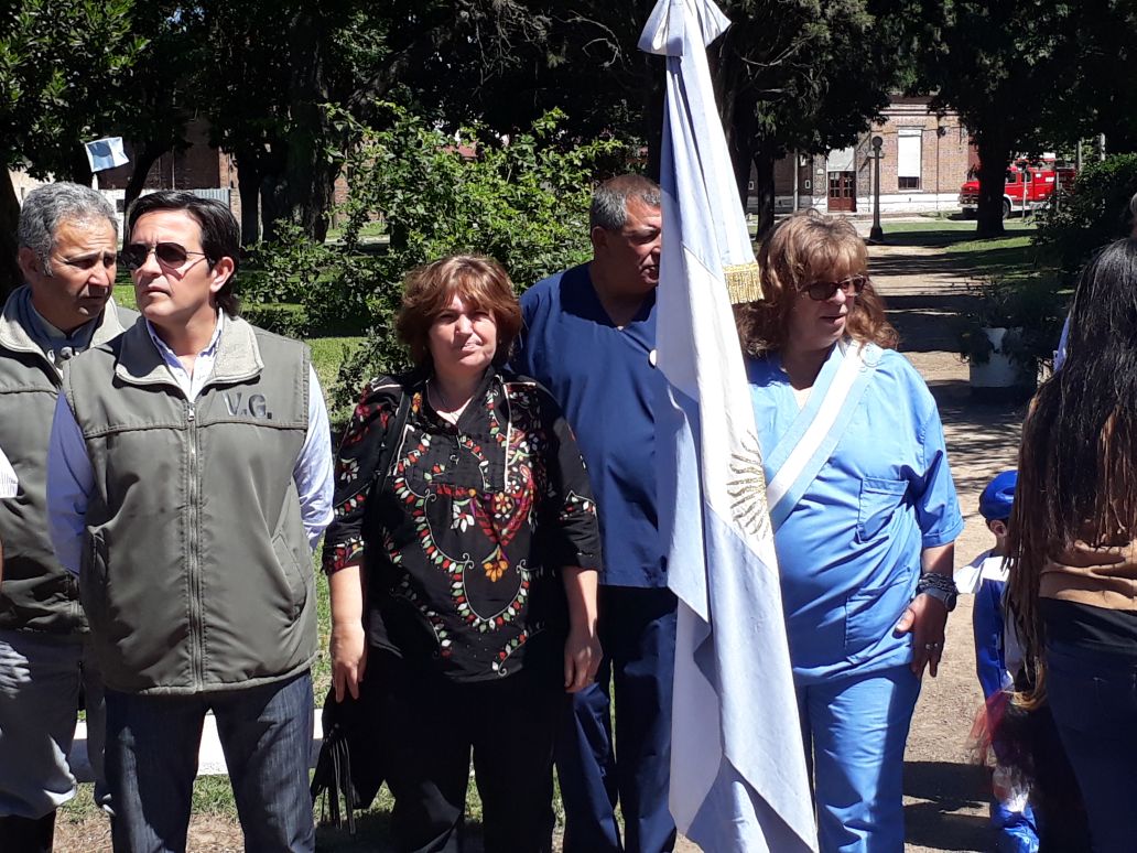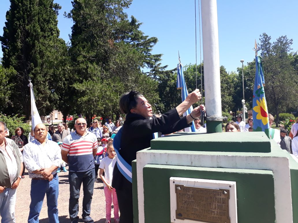 Tempranito esta mañana salí para Villa Moll. Pude ver el gran esfuerzo que pusieron todos los vecinos, la gente del Jardín Nº 903, de la E.P. Nº 19 y de la E.E.S. Nº 2, para engalanar la plaza y tener todo listo para las 10. Allí rodeando el mástil de la plaza estaban las distintas delegaciones y autoridades.  Las personas a cargo de la locución agradecieron especialmente la presencia de la Inspectora Jefe Distrital de Educación , sra. Marcela Sosa, del doctor a cargo del C.A.P.S., sr. Sergio Correa, del Delegado Guillermo Camisa, de los Ex Combatientes de Malvinas y de las demás instituciones presentes. Comenzó el acto protocolar, con el ingreso de las banderas de ceremonia. Poco después, los miembros de cada cooperadora, de las instituciones presentes y alumnos de jardín, primaria y secundaria, izaron el pabellón nacional. La señora Adriana Petrola entonó Aurora junto a todos los presentes. Posteriormente se entonaron las estrofas del Himno Nacional Argentino y a continuación se dirigieron a los presentes, las directoras educativas de la localidad: Natalia Dávila, Leonor Meoniz y Alejandra Guardia, como así también, la Inspectora Marcela Sosa.