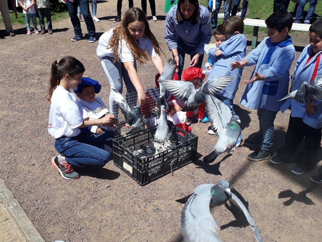 Más tarde se realizó una suelta de palomas y posteriormente se retiraron las banderas de ceremonia para dar lugar al desfile que comenzó frente al Club Jorge Brown.