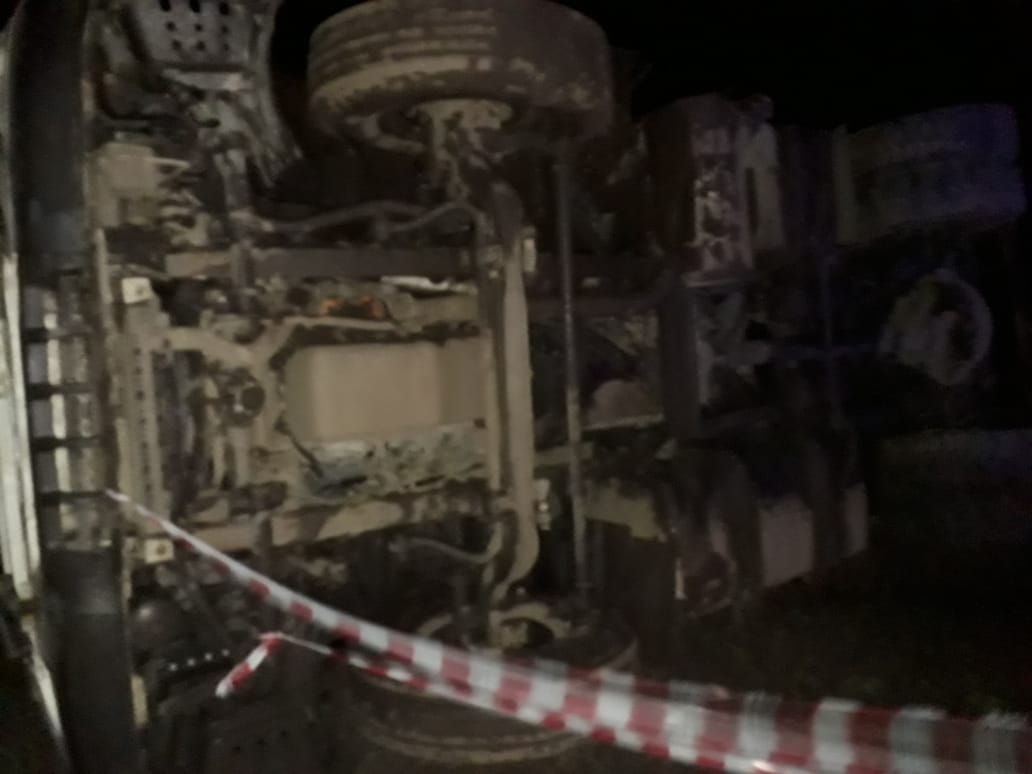 Hace minutos nada más se produjo el vuelco de un camión de transporte de gas cloro en la ruta 41, en sentido Navarro Mercedes a pocos metros de la estación de servicio y las vías. Este medio, único en el lugar, pudo hablar con el chofer del camión, el que nos manifestó que por las ondulaciones de la ruta, el camión se movió demasiado, provocando el vuelco sobre la banquina. La policía comunal estaba hace minutos en el lugar, pidiendo precaución a los automovilistas, ya que está muy oscuro y con la llovizna se puso bastante patinosa la ruta. Cabe destacar que el chofer está ileso y no se mueve del lugar hasta que no vengan a auxiliarlo. Se ruega circular con precaución en el lugar. Al momento del vuelco, de acuerdo a lo que nos comentó el chofer, el camión venía sin carga, por lo que no había peligro de derrame en la ruta.