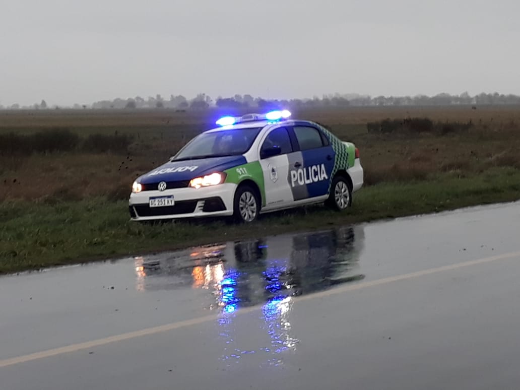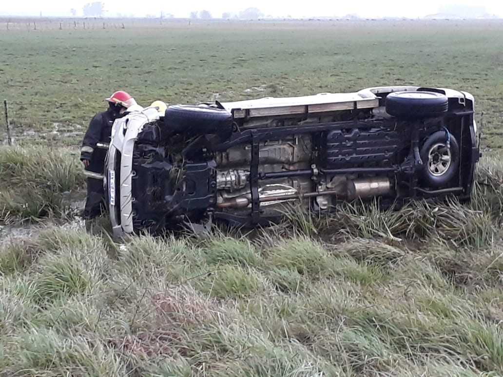 La camioneta quedó como pueden ver en la imágen con uno de sus laterales sobre el agua y el barro.