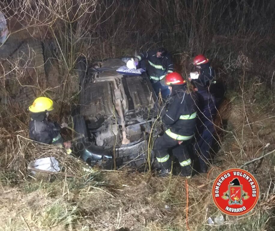 La salida de Bomberos Voluntarios de Navarro de las 4,50 se debió al vuelco de un automotor (Fiat Siena) en ruta 40 km. 97 (altura cancha de paleta – César). Una persona del sexo femenino, que conducía el vehículo, fue trasladada al hospital local. Se encuentra en observación y fuera de peligro. Es todo cuanto nos informan desde el cuartel central.