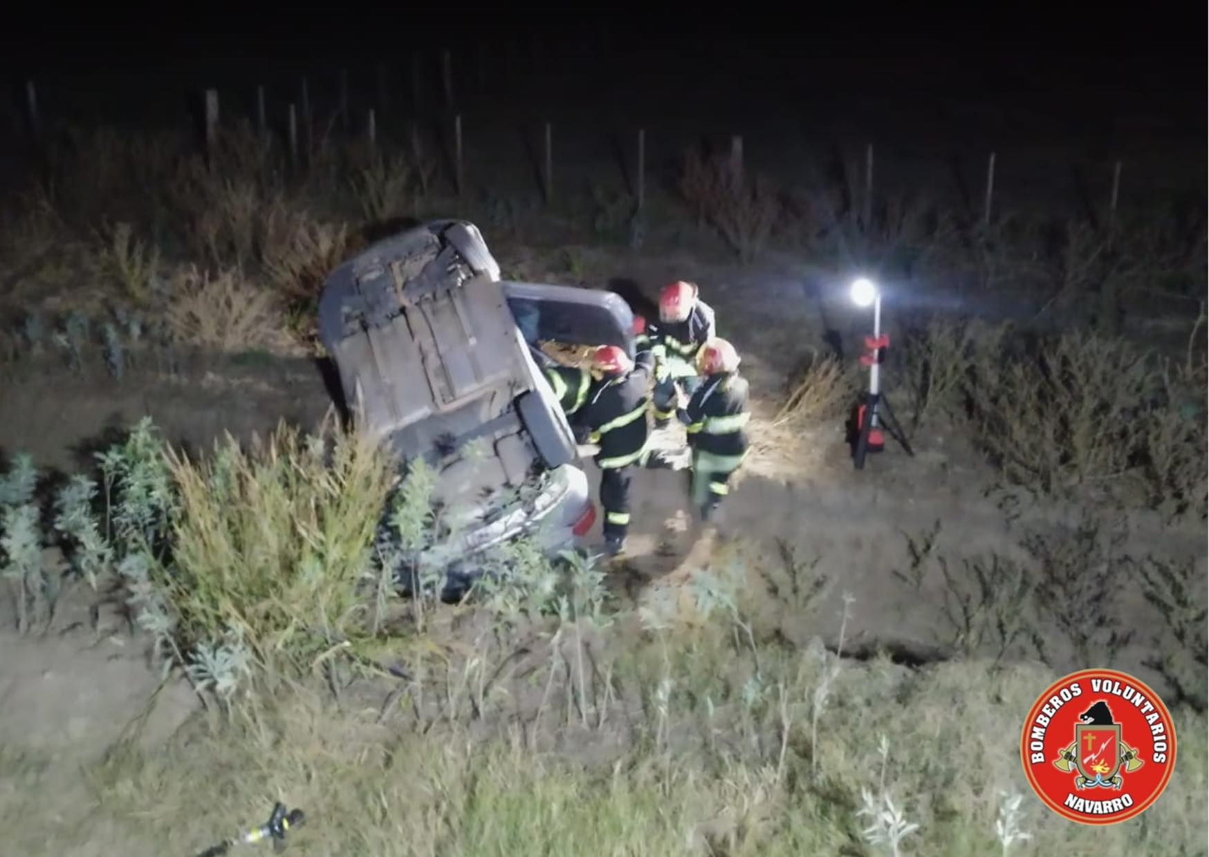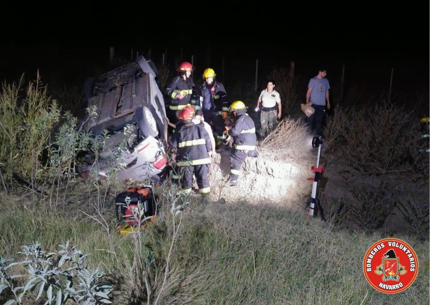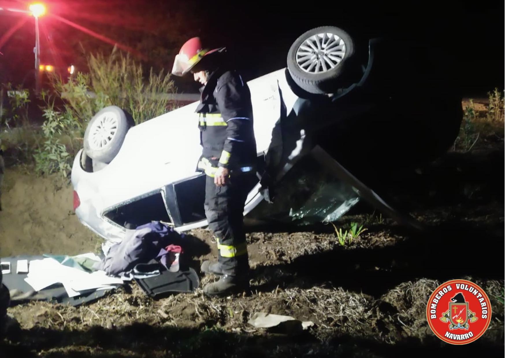 Siendo las 22,50 de este viernes, salieron 4 unidades de los Bomberos Voluntarios de Navarro, a raíz del vuelco de un automóvil en ruta 44 (altura Estancia El Placer). De acuerdo a los informes recibidos, se trató de un Volkswagen Gol en el que iban dos ocupantes masculinos mayores de edad que fueron trasladados al hospital local. En el lugar intervino la Patrulla Rural de nuestra ciudad, además de los bomberos. Es toda la información con la que contamos por el momento.