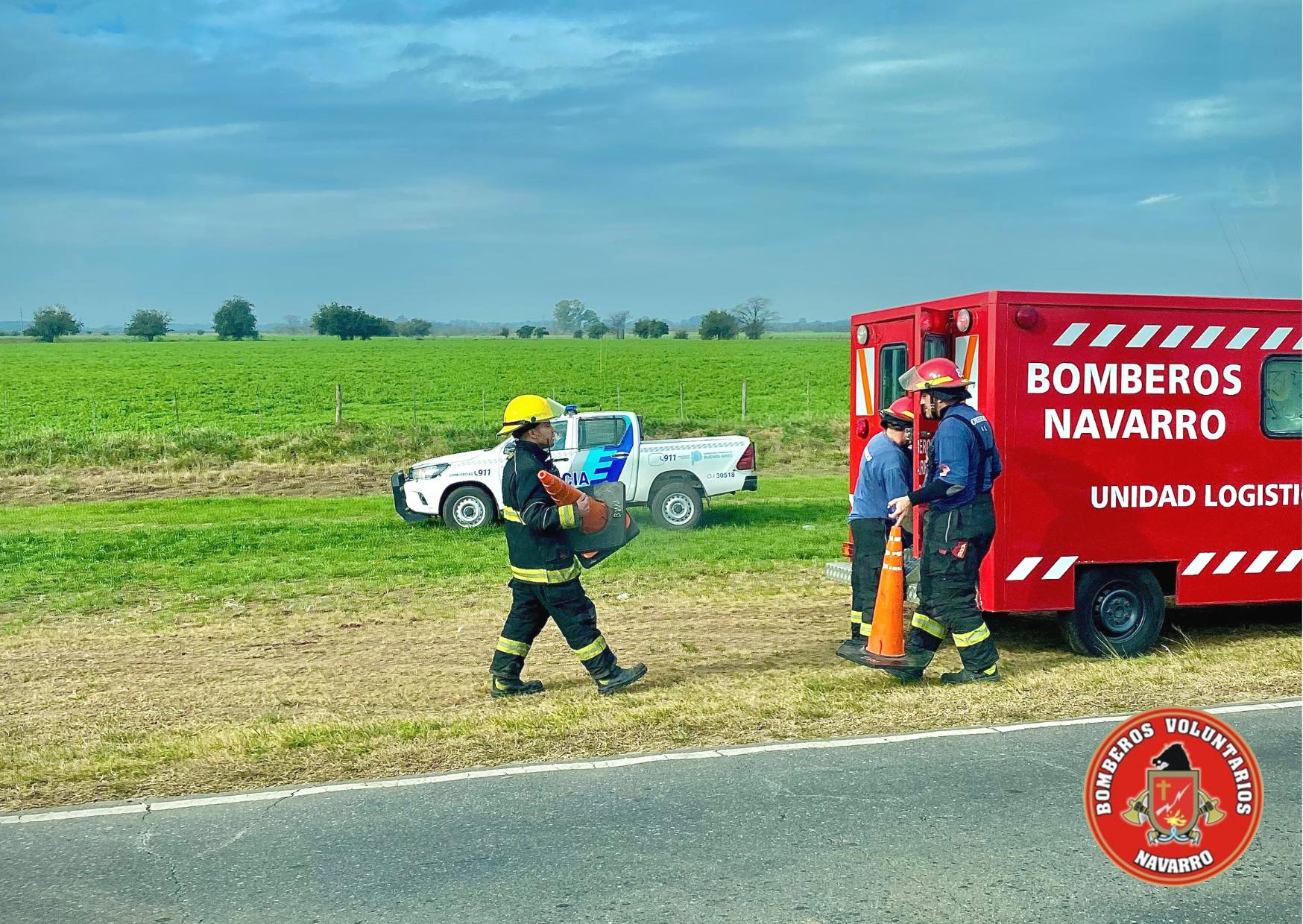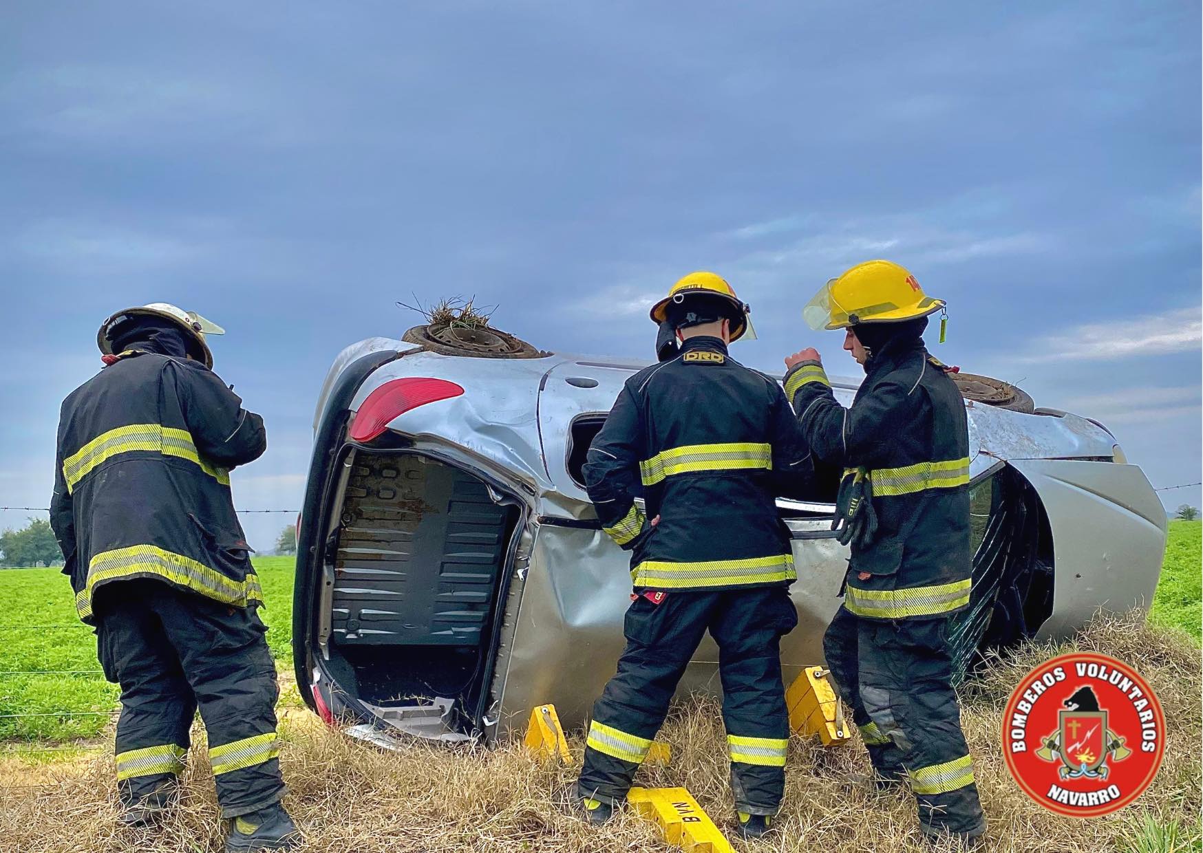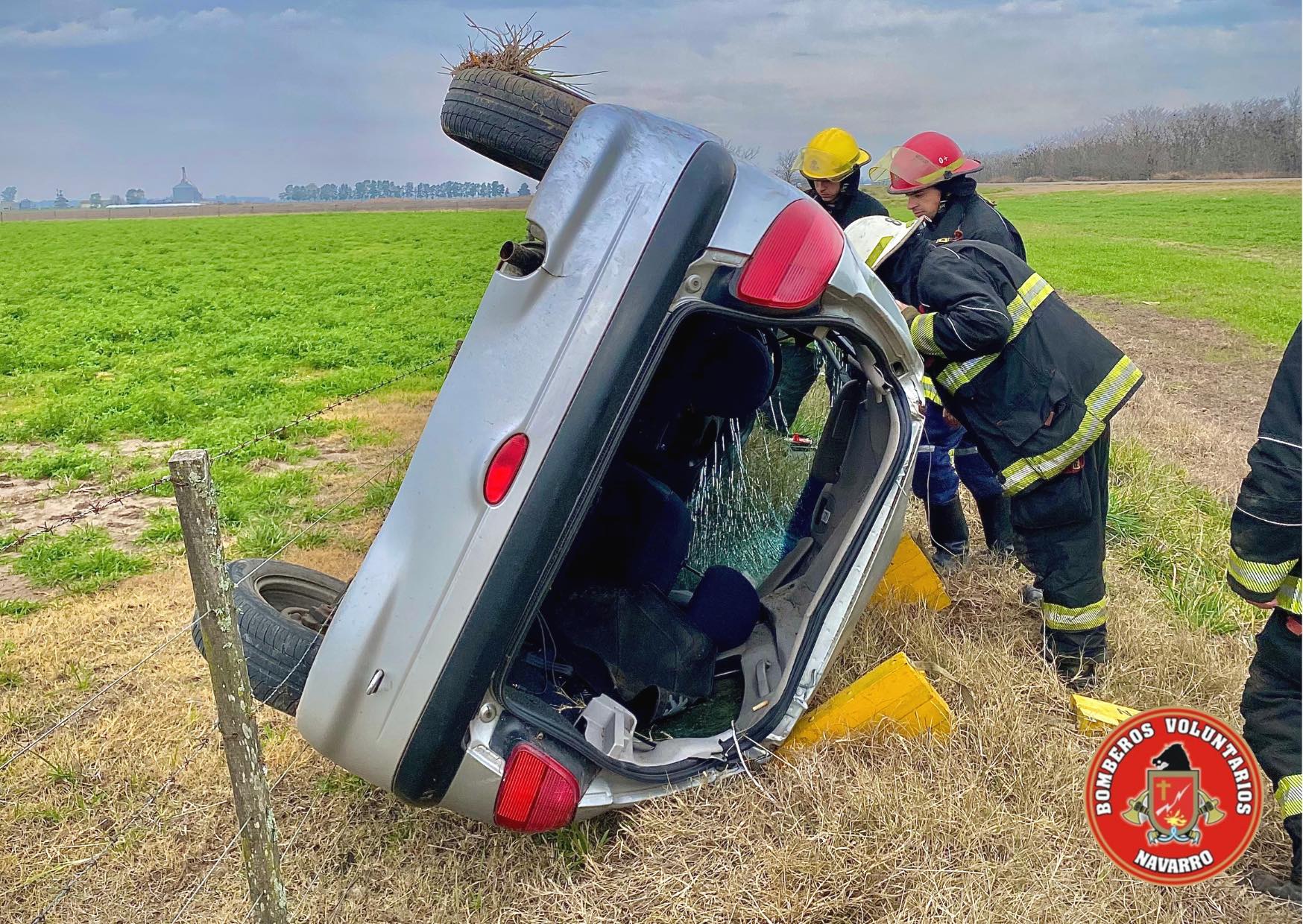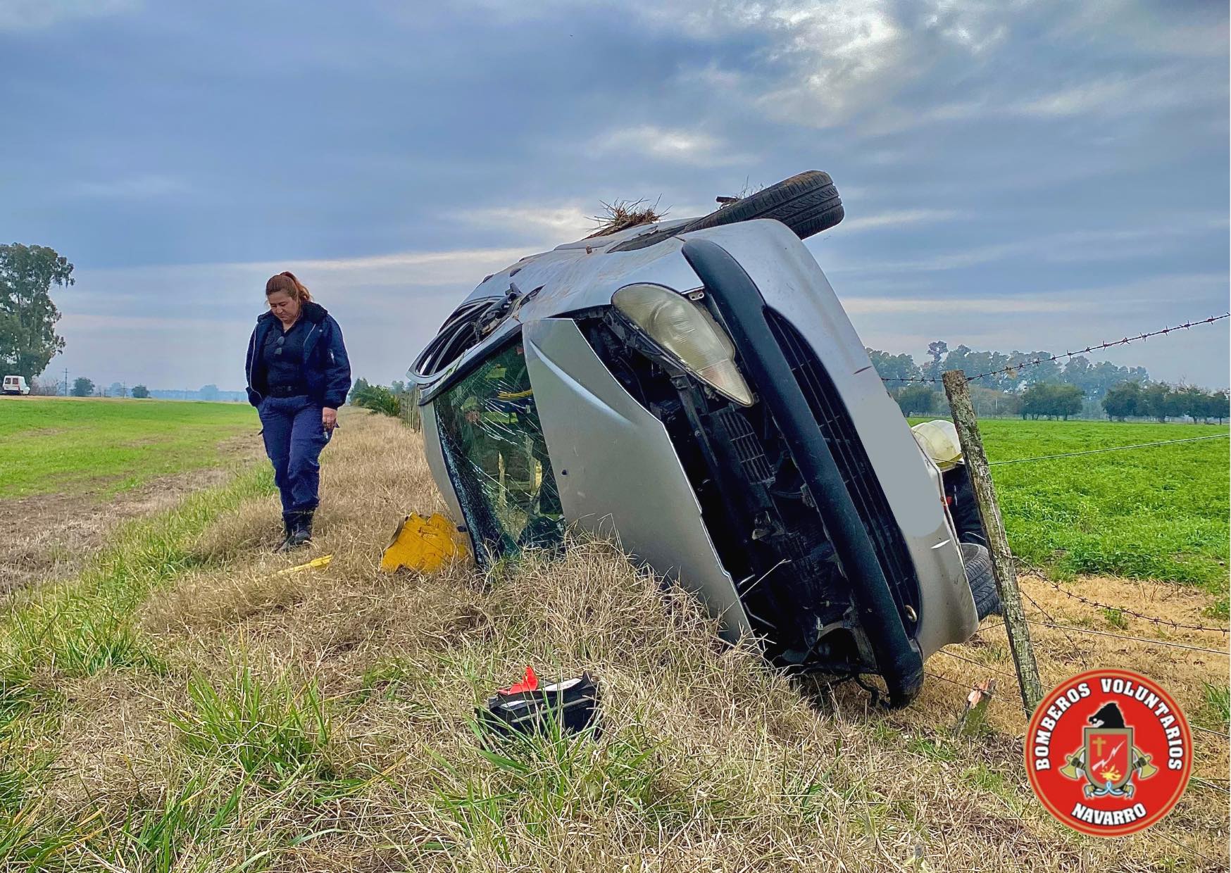 La salida de Bomberos de Navarro de las 14 se debió al vuelco de un Peugeot 206 en ruta 41, altura kilómetro 196,2 a 100 metros de la bajada a la GAIA. La conductora del vehículo de acuerdo a lo que nos informan, se dirigía desde San Bernardo a Baradero y fue trasladada con politraumatismos al hospital local.