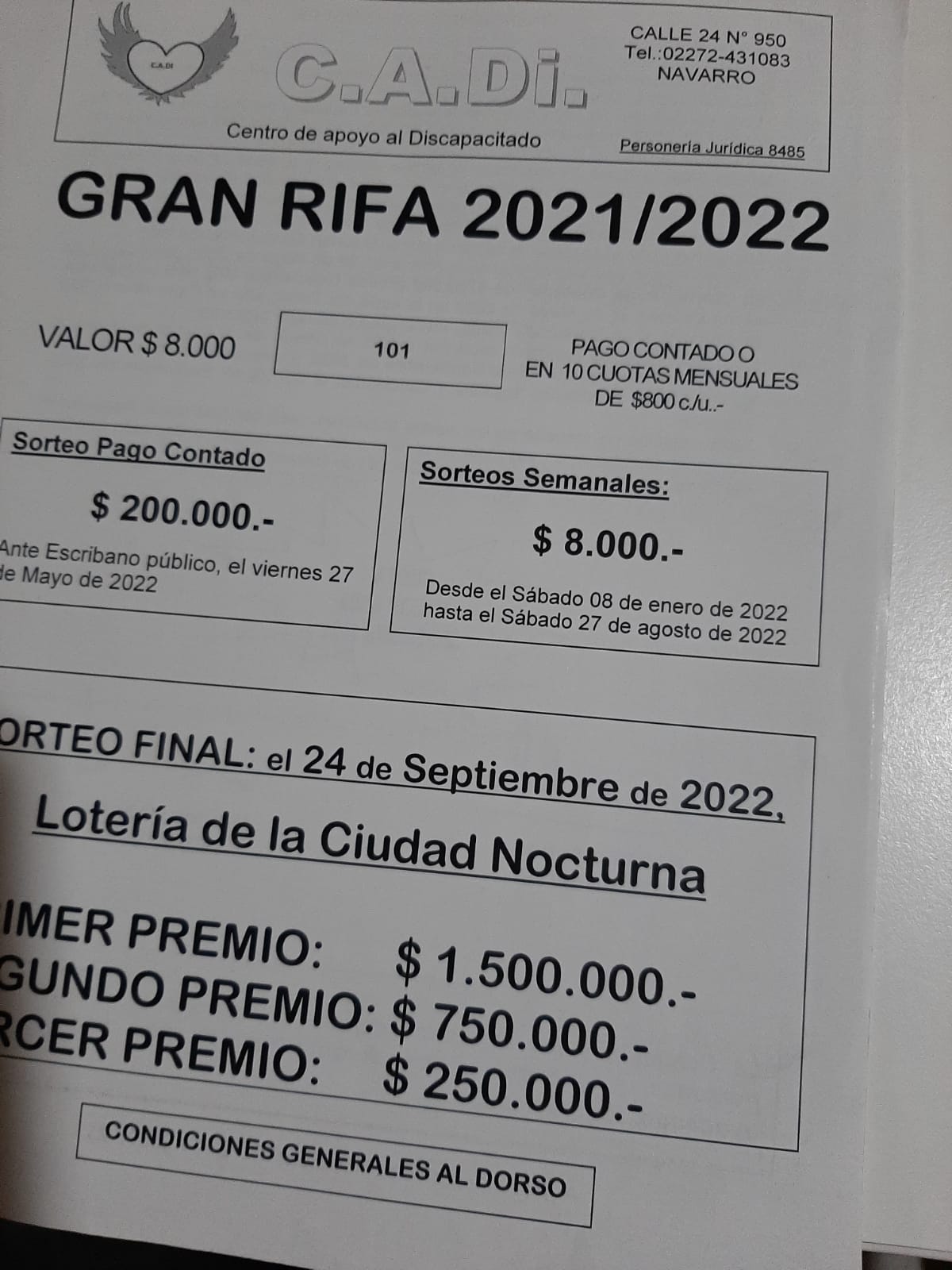 Se realizó esta noche el sorteo final de la gran rifa del C.A.DI. Una vez obtenidos los permisos de los ganadores para su difusión, como lo exige la actual ordenanza, la institución informa lo siguiente: