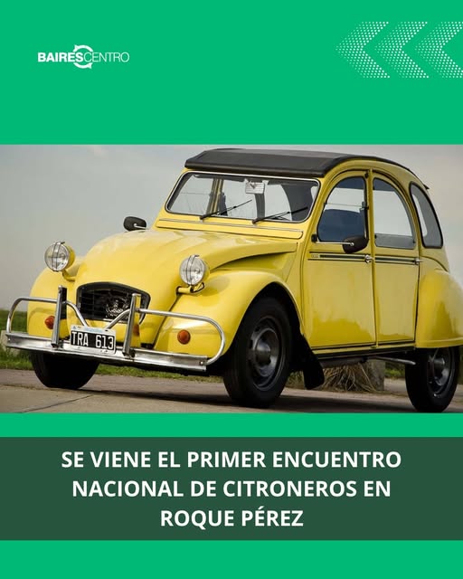 Este sábado 11 de octubre desde las 14,30, se llevará a cabo en el predio del Ferrocarril de Roque Pérez, el Primer Encuentro Nacional de Citroneros, un evento que reunirá a admiradores y fanáticos de los clásicos Citroën de todo el país. Durante la jornada, los visitantes podrán disfrutar de una exposición de vehículos Citroën, una feria de artesanos, propuestas de gastronomía local y la participación de la Escuela de Mecánicos Aficionados Citroën, que brindará demostraciones y charlas sobre el mantenimiento y la historia de estos emblemáticos autos.